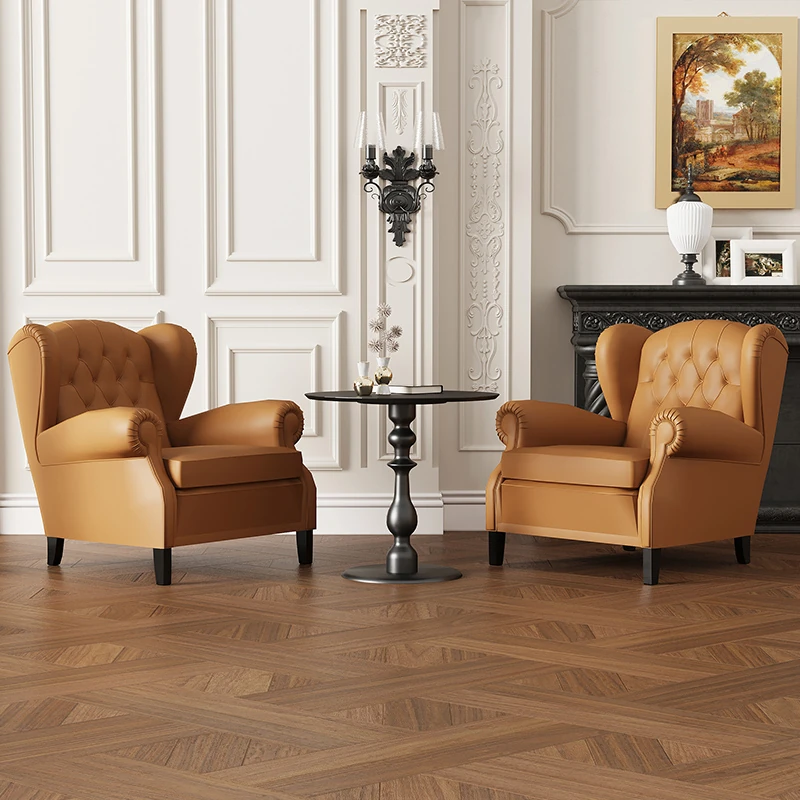 フランス風レトロ一人用ソファチェア - ウイスキー・バーやラウンジに最適!リラックスできるシガーチェア、ホテルやクラブの商談にもぴったり。ゴッドファーザーの雰囲気を楽しんで、特別なひとときを演出します!