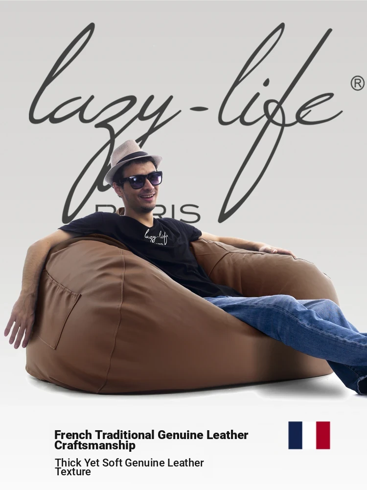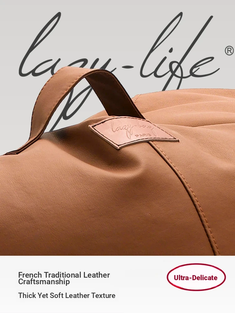 French LazyLife Genuine Leather Reclining Sofa - Versatile Lounger and Bed for Balcony, Oversized Bean Bag Chair, Perfect for Relaxation and Comfort.