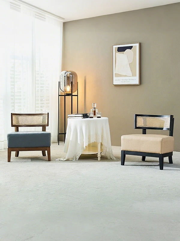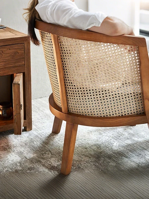 Nordic Rattan Woven Armchair - Stylish Solid Wood Chair for Reading, Minimalist Modern Design, Perfect for Small Living Rooms and Balconies, Ideal for Relaxation