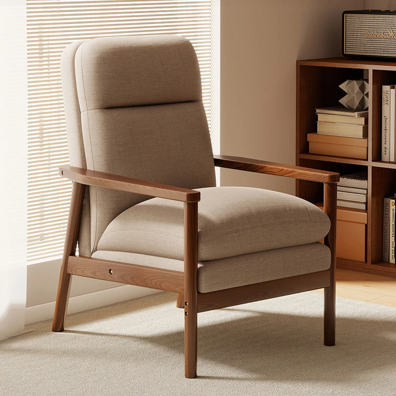 Modern Minimalist Solid Wood Single Sofa Chair - Stylish and Comfortable Armchair for Home, Balcony, and Living Room Reception