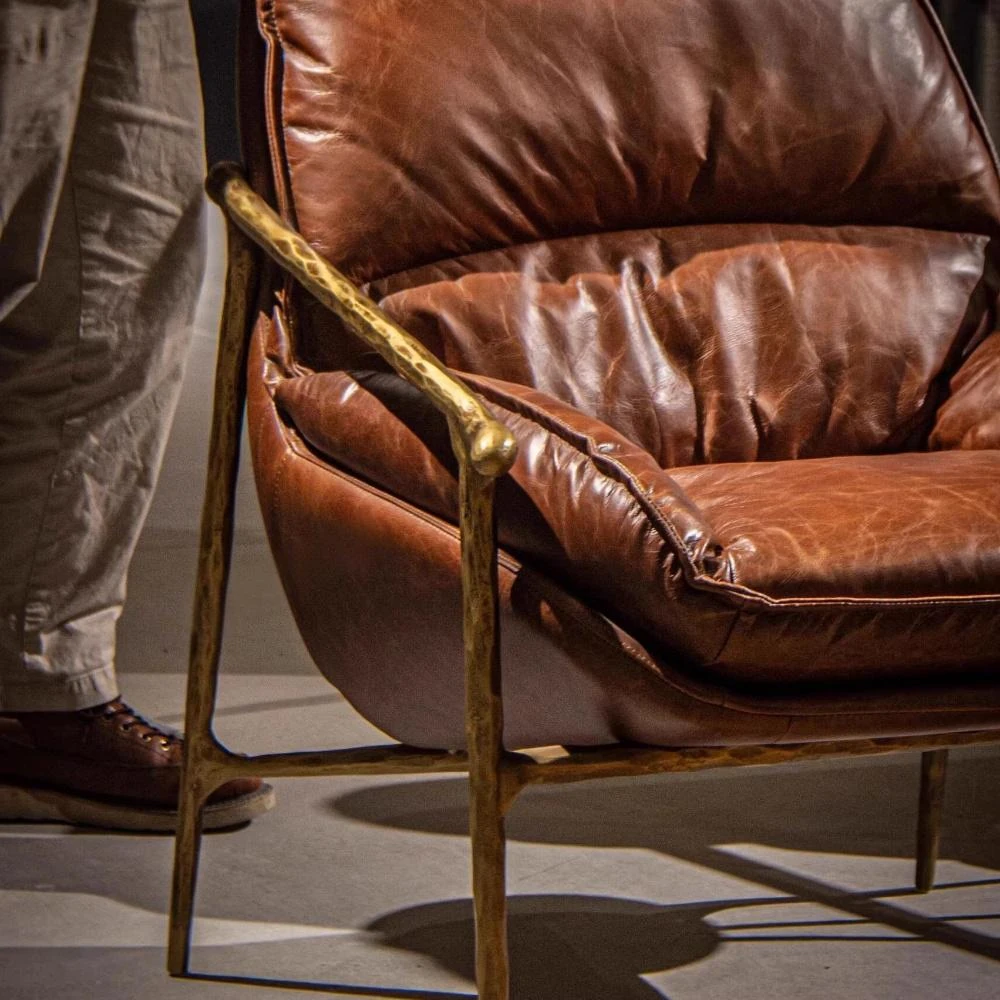Vintage Iron Forged Leisure Chair 2025 New Retro Style Armchair, Waxed Leather Single Sofa for Cozy Relaxation - Perfect for Your Home Decor!