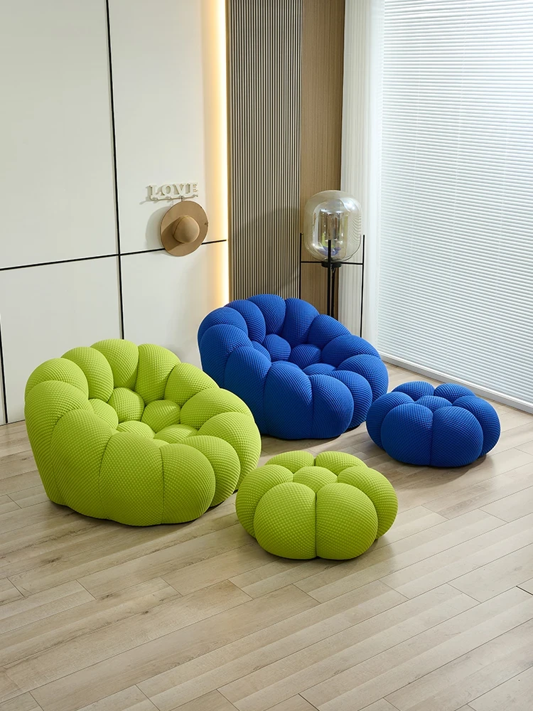 Trendy Rococo Bubble Single Sofa - Designer Lounge Chair for Living Room, Shaped Cotton Football Pumpkin Lazy Sofa Seat