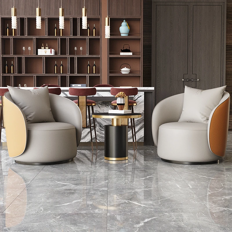 Modern Single Leather Sofa Chair for Hotels and Balconies - Stylish and Comfortable Lounge Chair for Business Meetings and Reception Areas, Featuring a Rotating Design and Sleek Aesthetic.