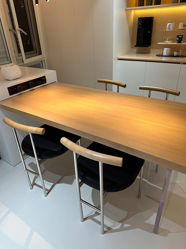 Sleek Minimalist Italian Dining Chair with Stainless Steel Frame and Ash Wood Backrest - Chic Luxury Design for Modern Homes