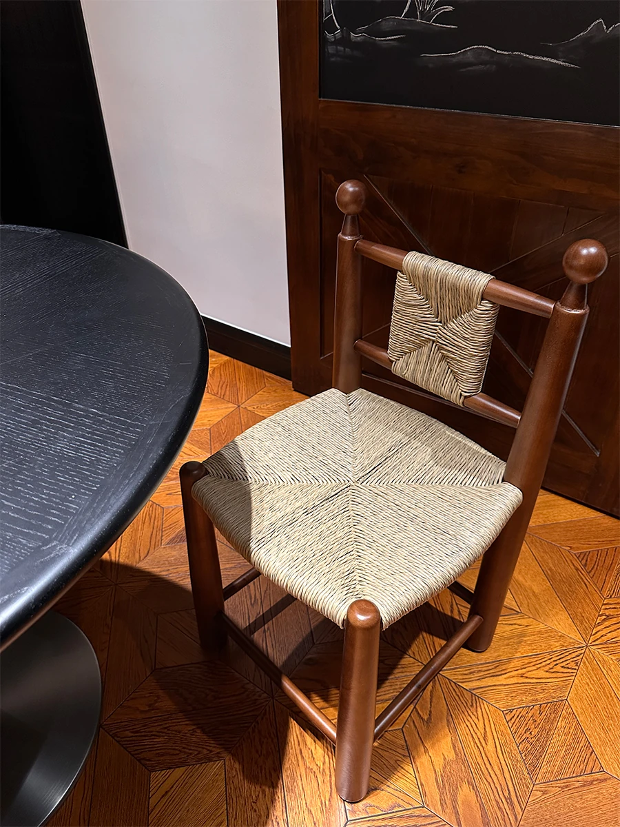 French Vintage Solid Wood Dining Chair - Retro Style Backrest Chair for Small Spaces - Perfect for Home Use, Dining Room, and Bohemian Decor - Stylish Woven Rope Design