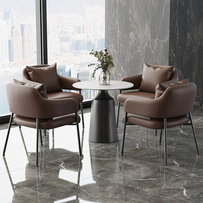 Modern Minimalist Single Leisure Chair Set for Hotels and Showrooms - Perfect for Cafes, Meetings, and Reception Areas with Stylish Small Round Tables