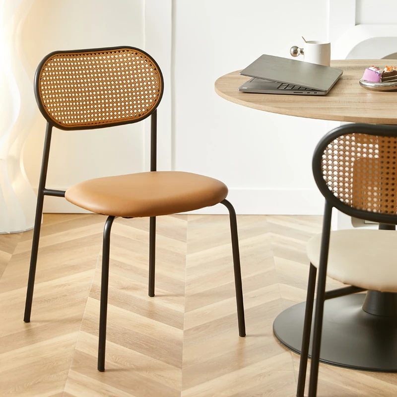 Nordic Vintage Rattan Dining Chair - Designer Mid-Century Style Chairs for Home, B&Bs, and Cafés with Iron Backrest