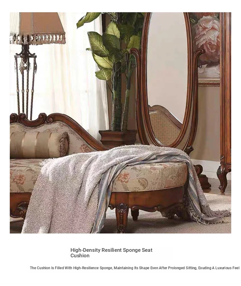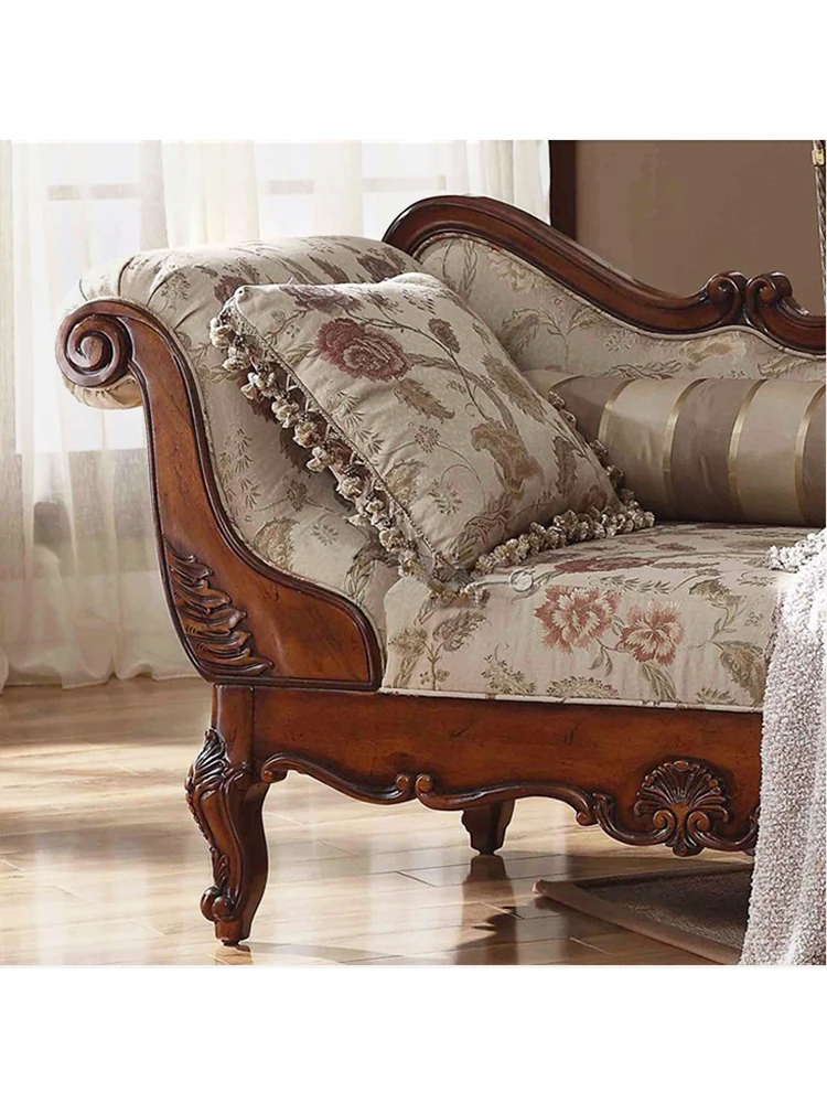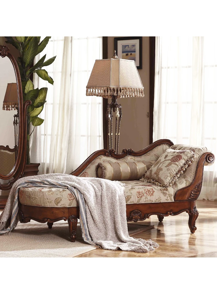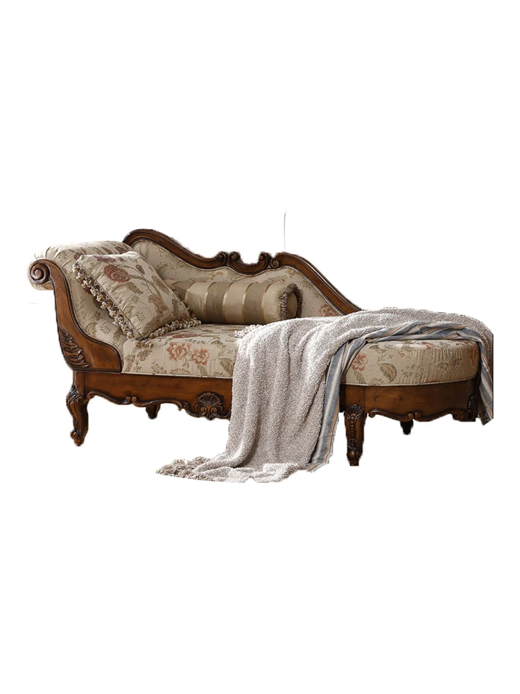 American Style Solid Wood Chaise Lounge - Upholstered Balcony Relaxation Sofa, Bedroom Beauty Bed, Elegant European Single Recliner Chair