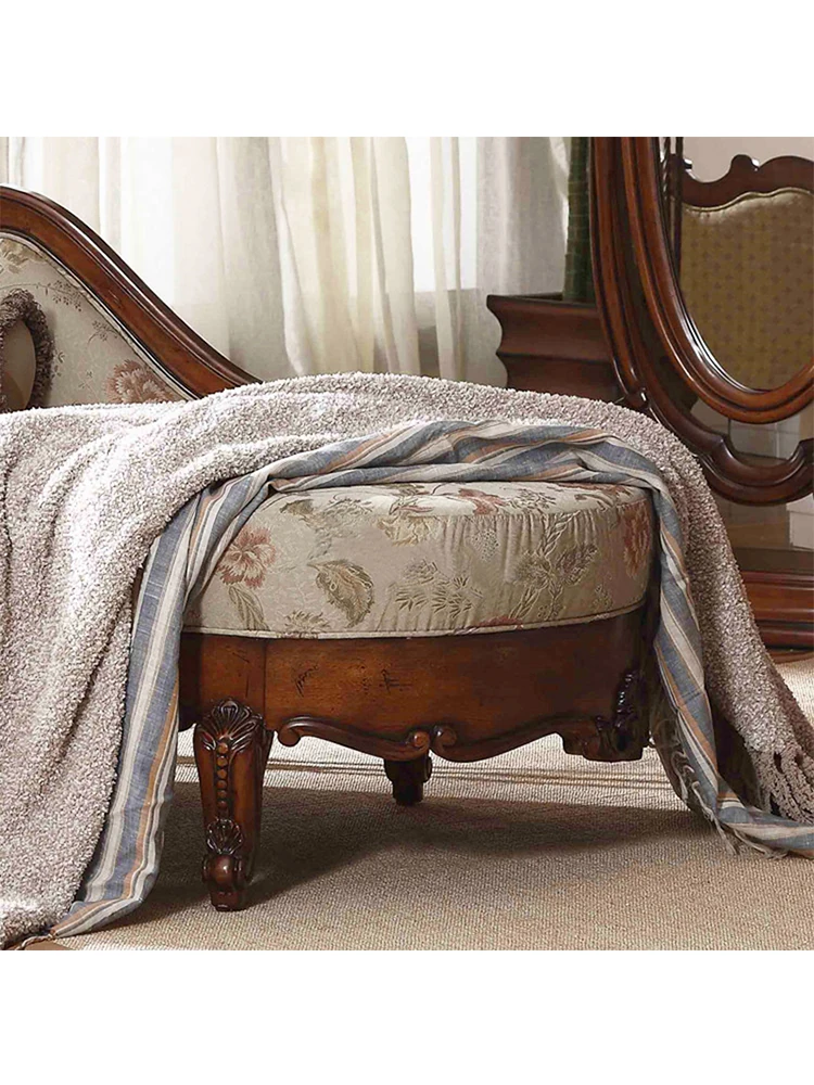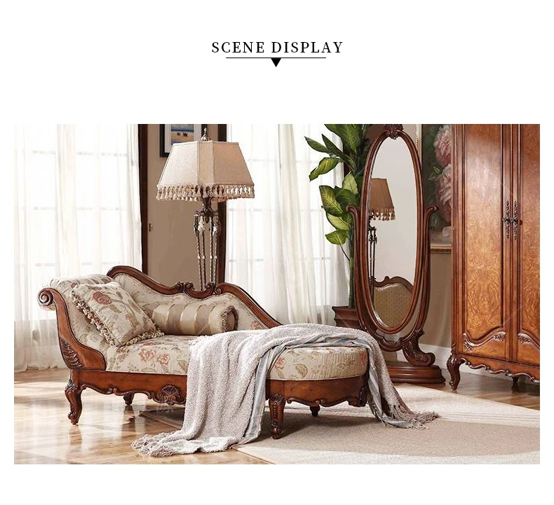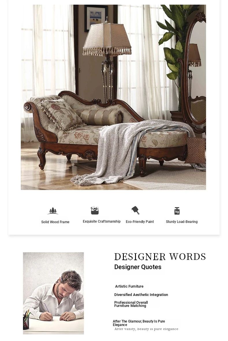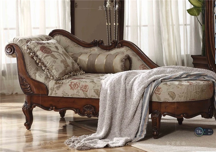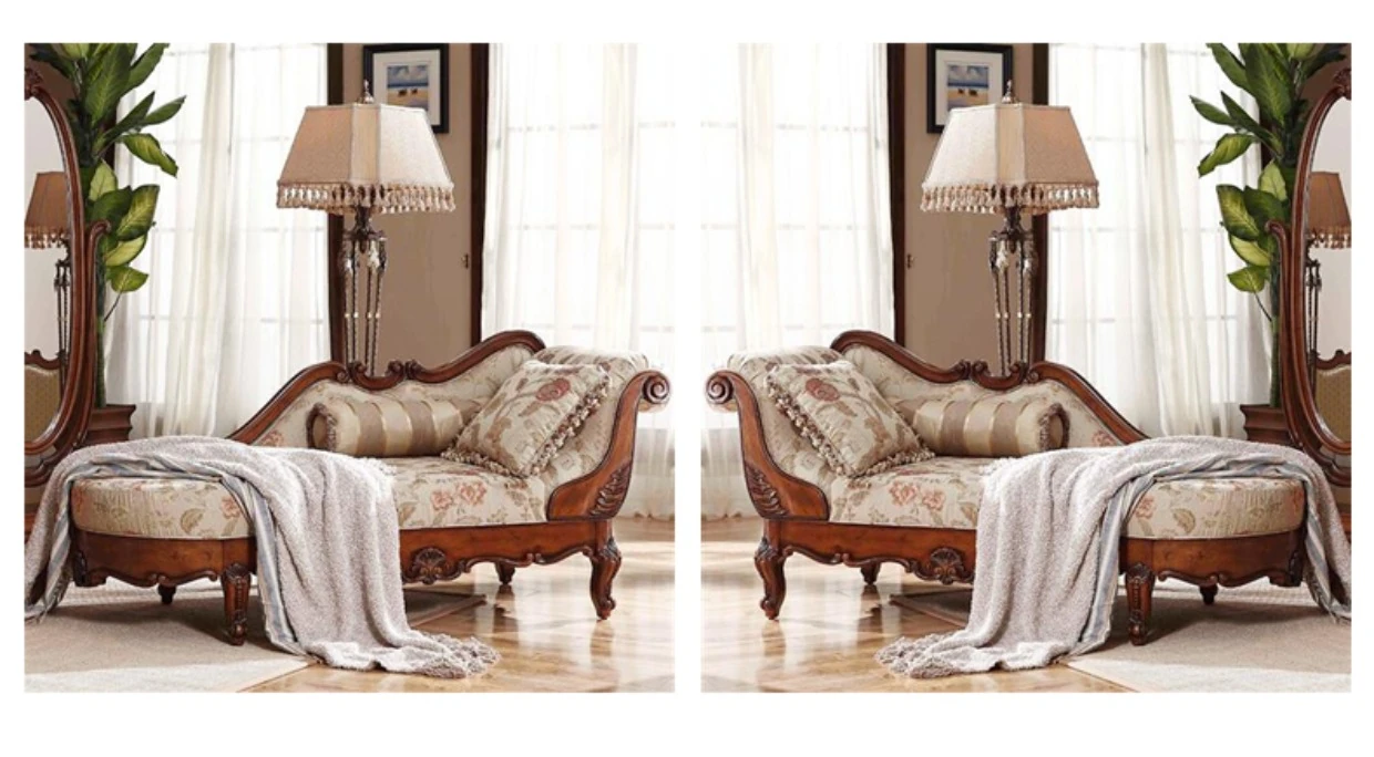 American Style Solid Wood Chaise Lounge - Upholstered Balcony Relaxation Sofa, Bedroom Beauty Bed, Elegant European Single Recliner Chair