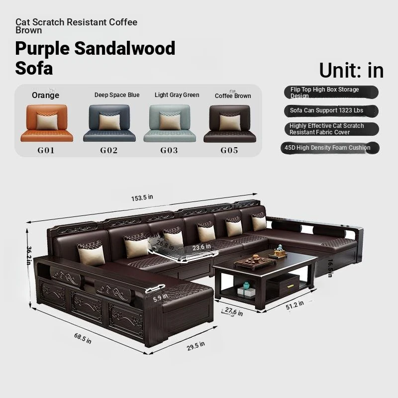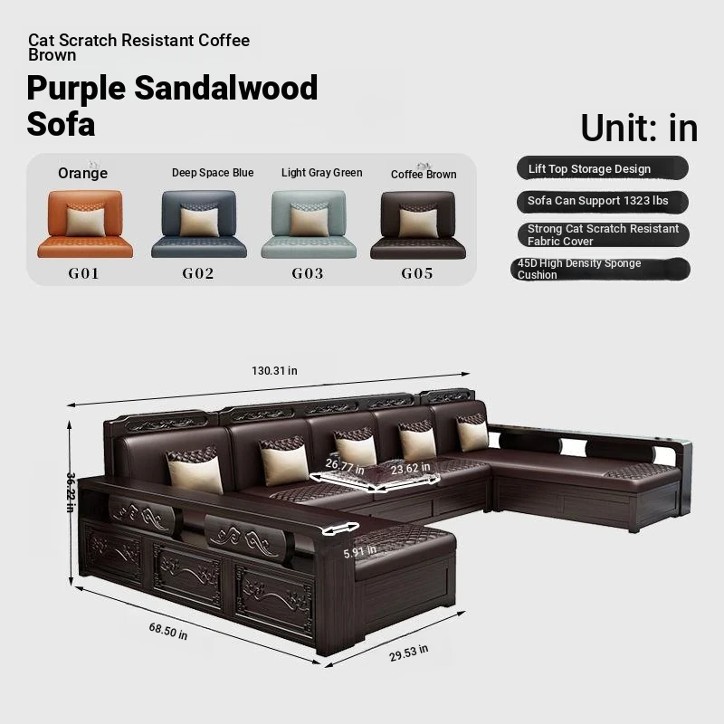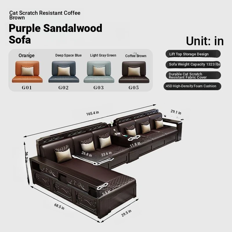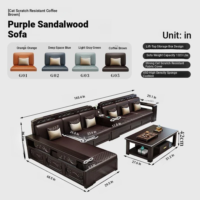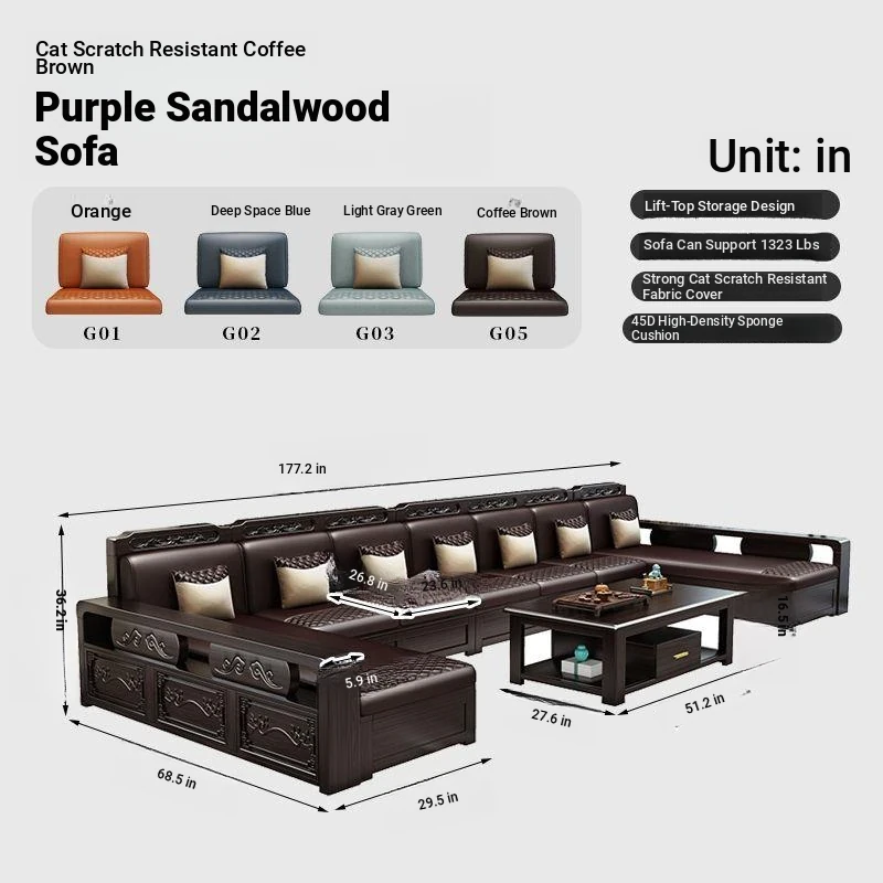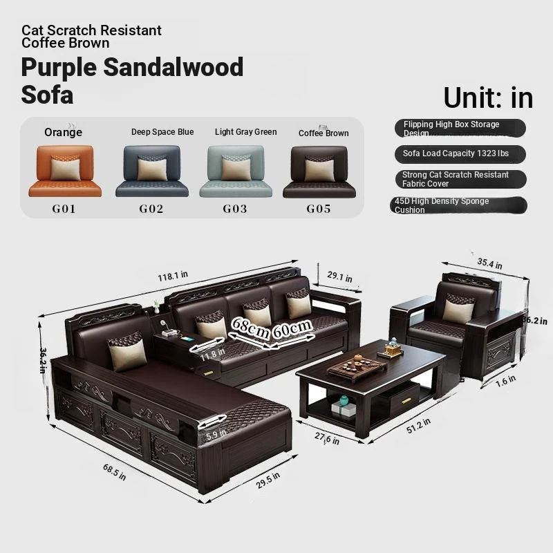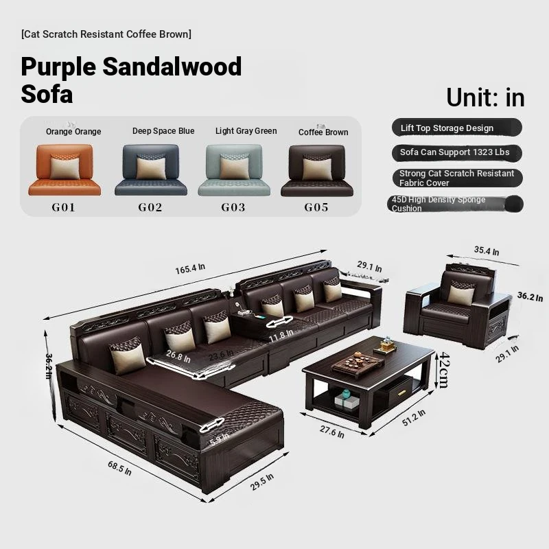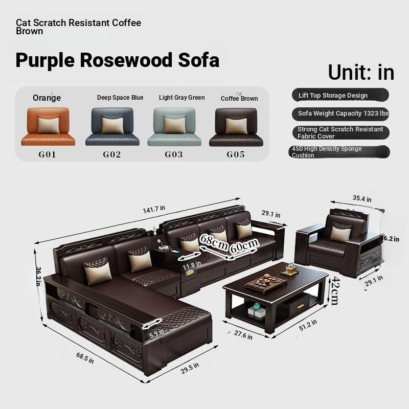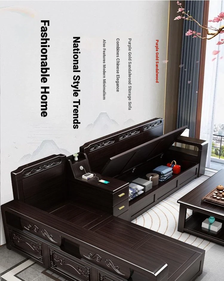 Classic Purple Sandalwood Solid Wood Sofa Set - Versatile Furniture for Small Spaces, Ideal for Year-Round Use, Modern Storage Solutions, Minimalist Design for Your Living Room