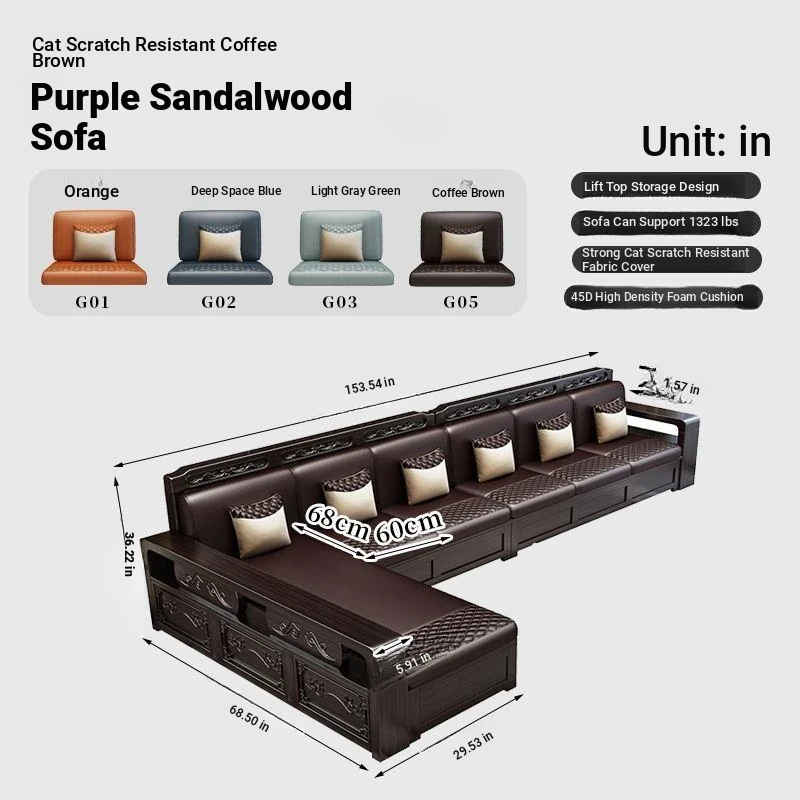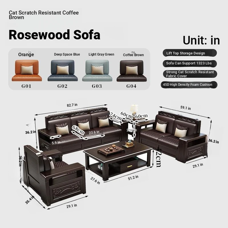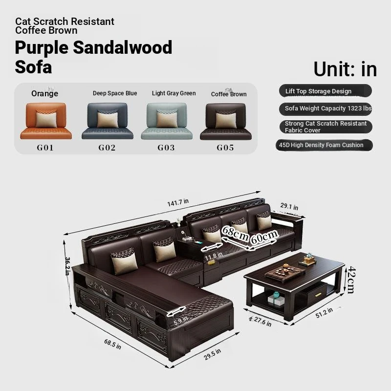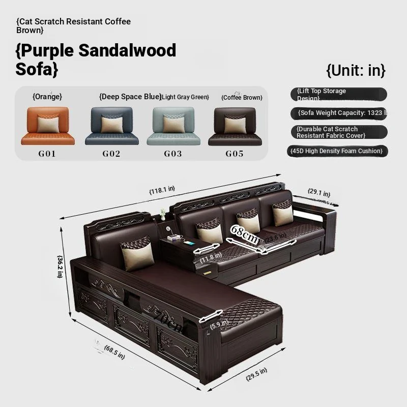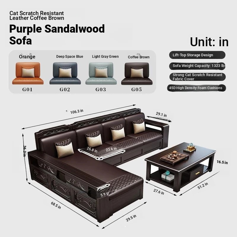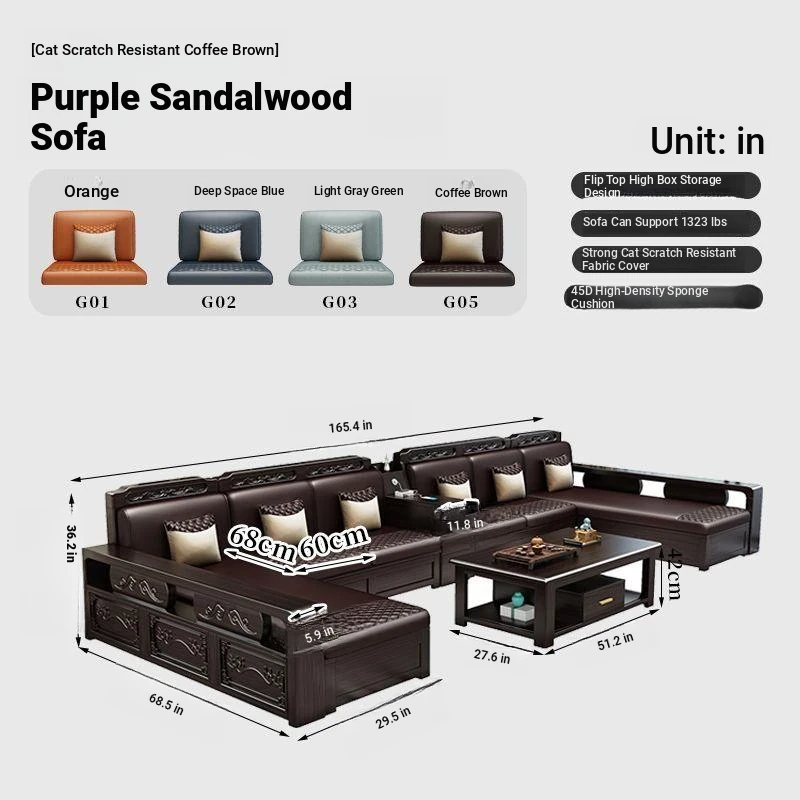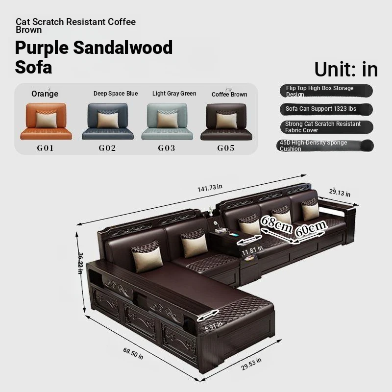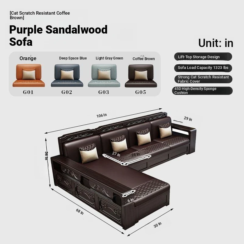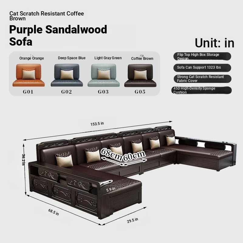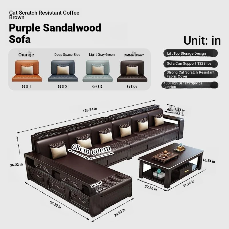 Classic Purple Sandalwood Solid Wood Sofa Set - Versatile Furniture for Small Spaces, Ideal for Year-Round Use, Modern Storage Solutions, Minimalist Design for Your Living Room