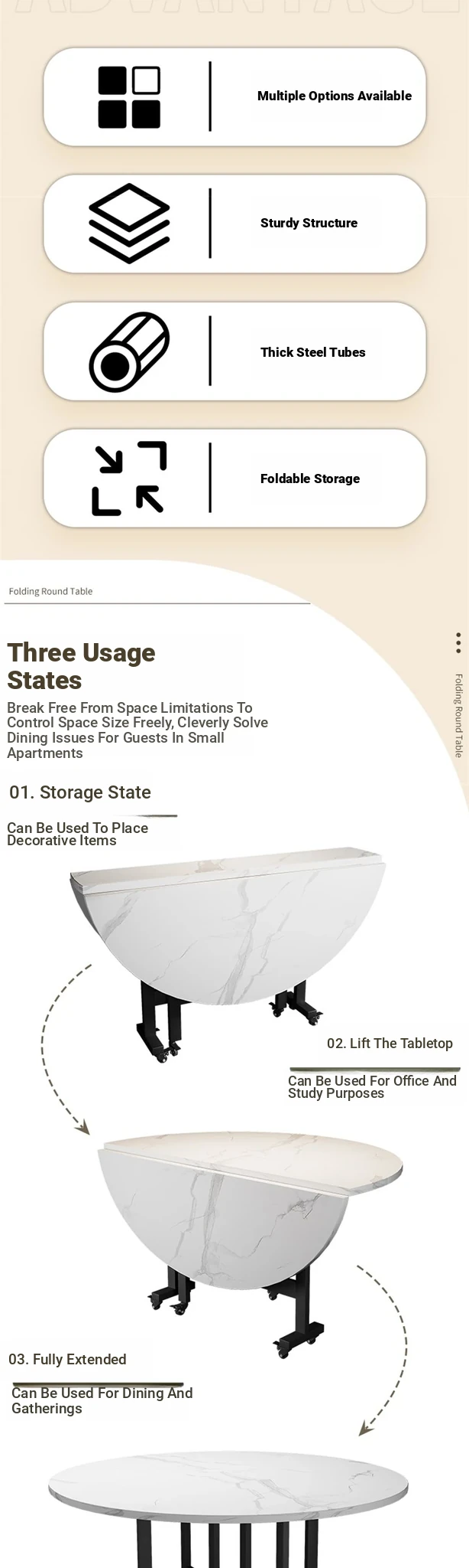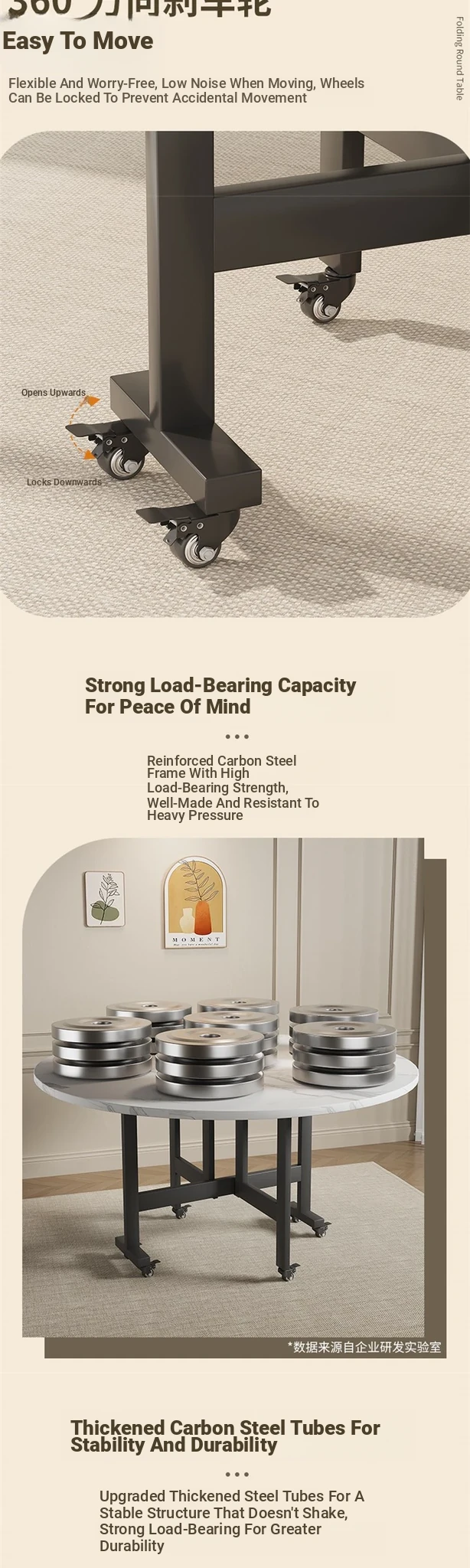 Folding Round Dining Table - Space-Saving, Multi-Purpose Table for Family Gatherings and Easy Storage in Small Homes - Perfect for Meals and Versatile Use!