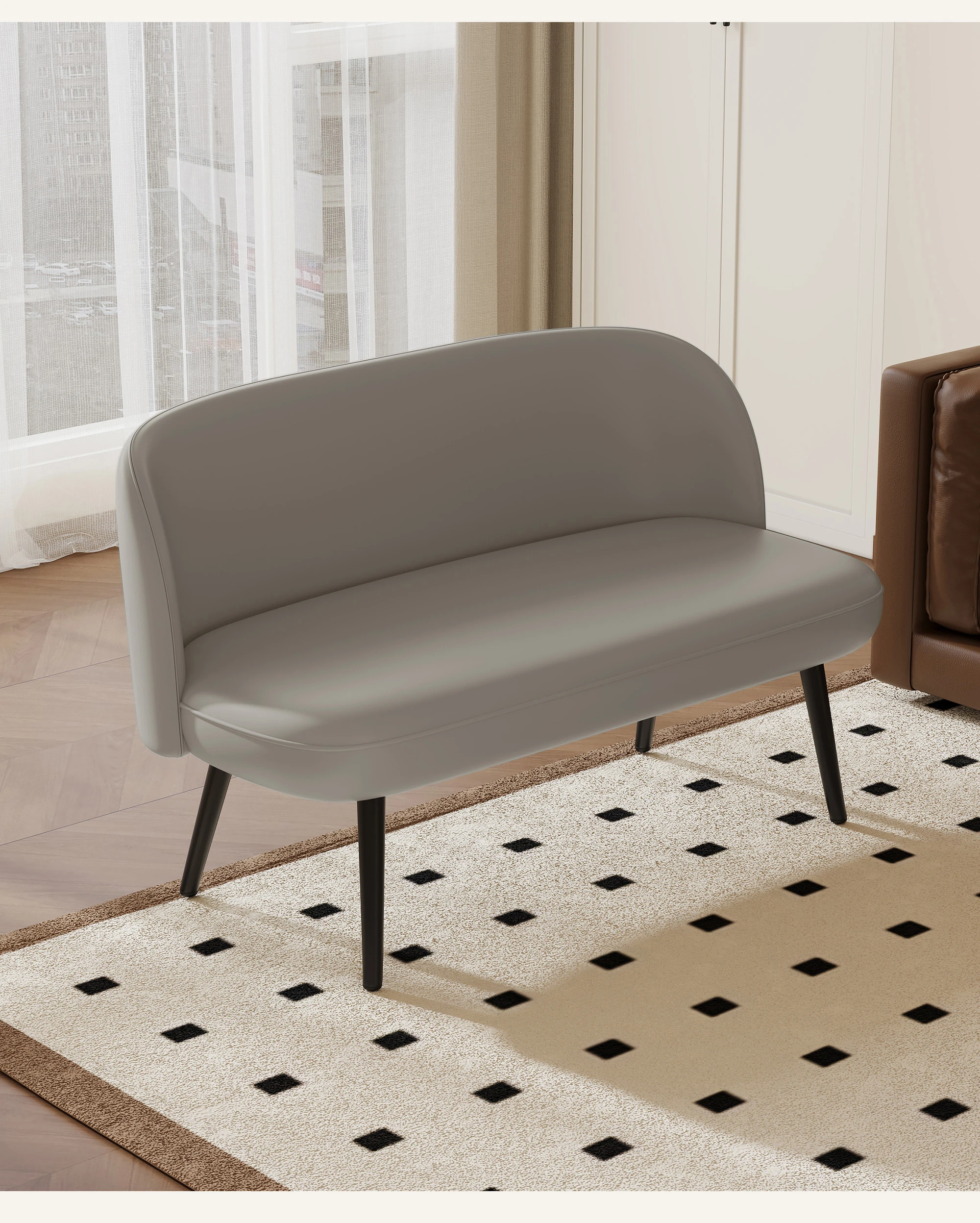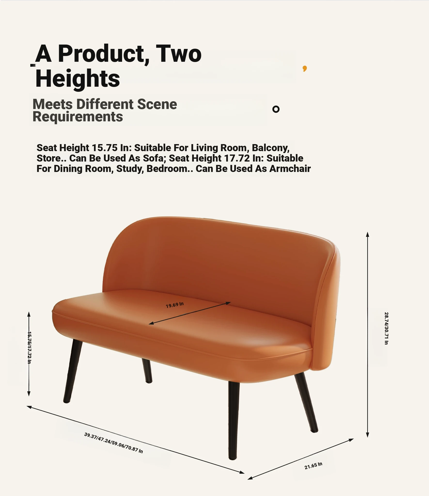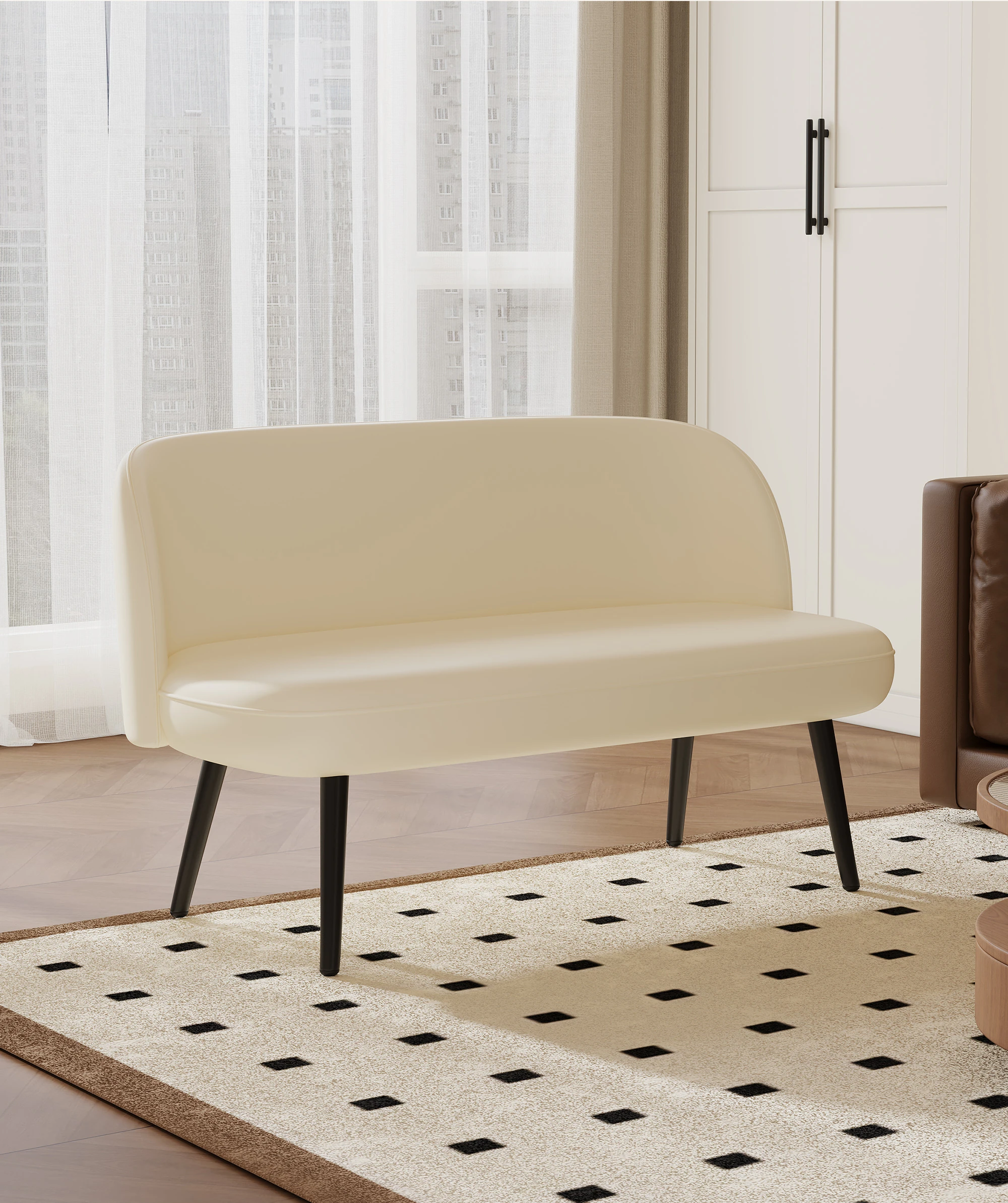 Italian Elegant High Leg Double Sofa for Small Spaces - Stylish and Comfortable Recliner for Living Room and Bedroom, Space-Saving Armless Long Bench Chair