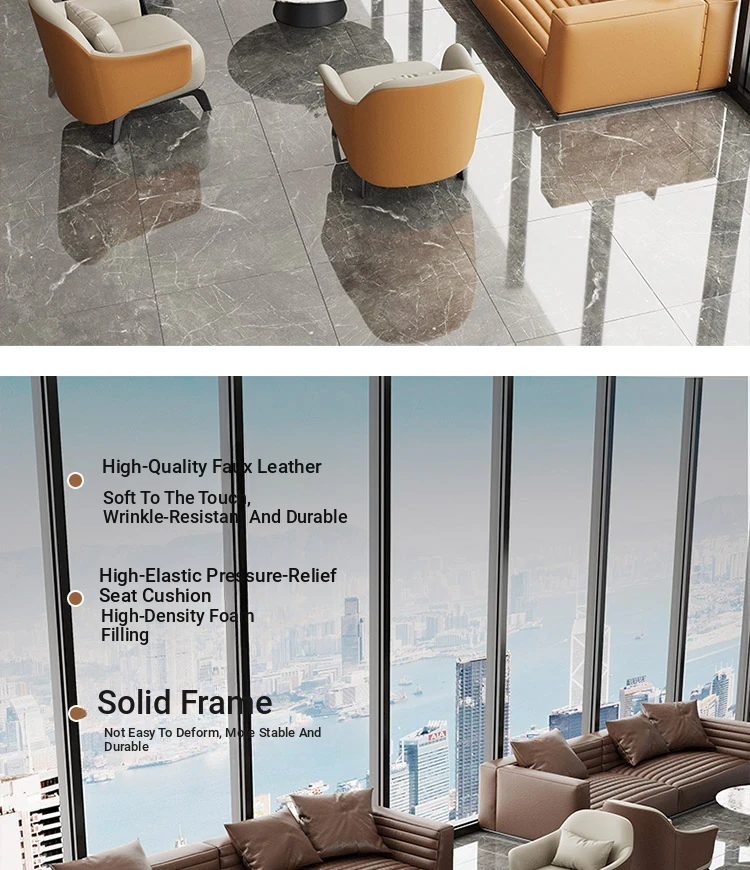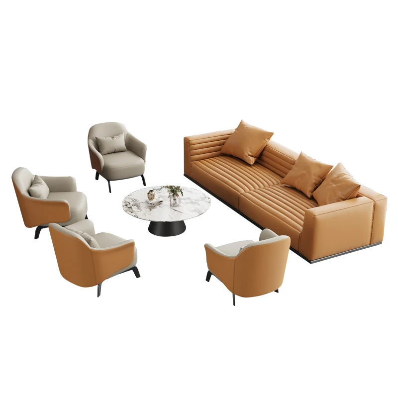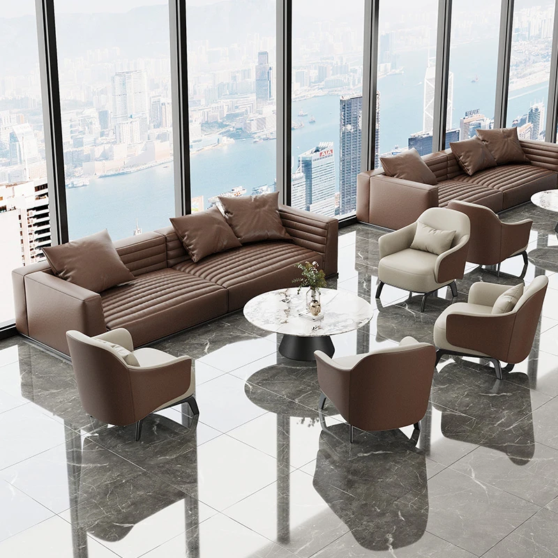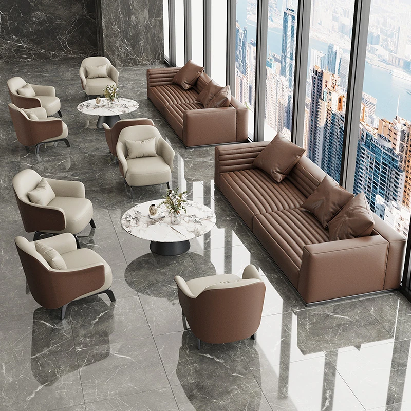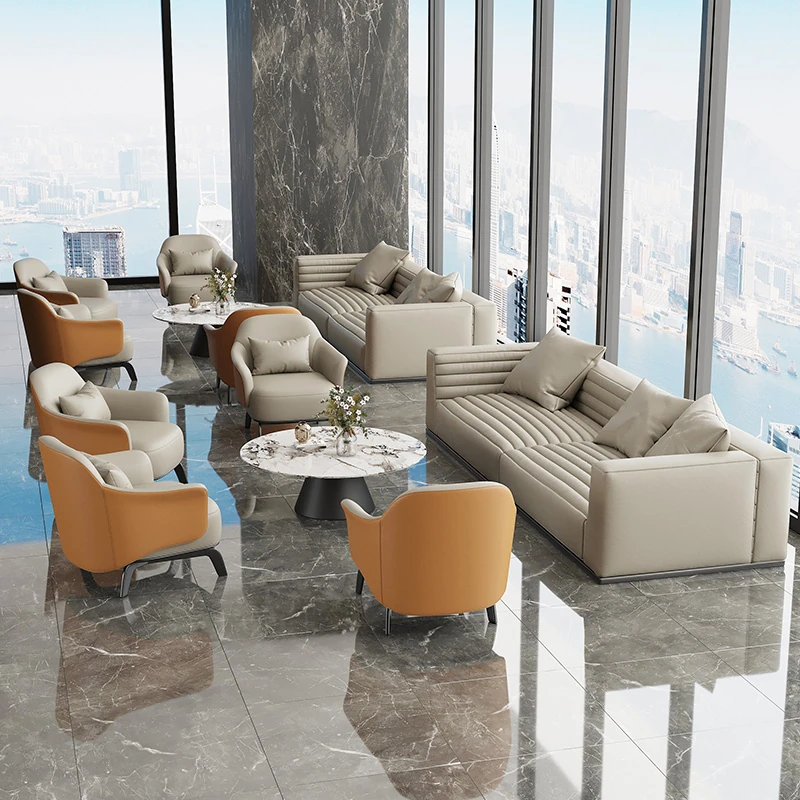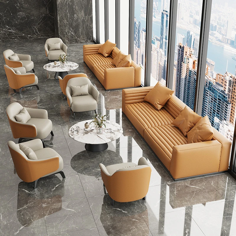 Luxury Lounge Sofa Set for Business Meetings - Elegant Reception Chairs and Coffee Table Combination for Hotels and Beauty Salons