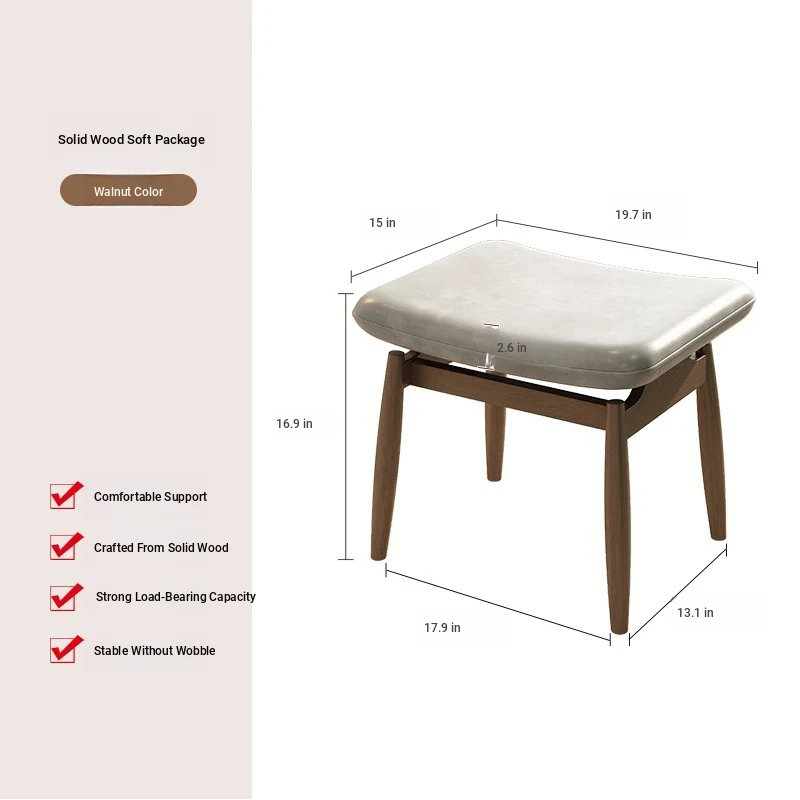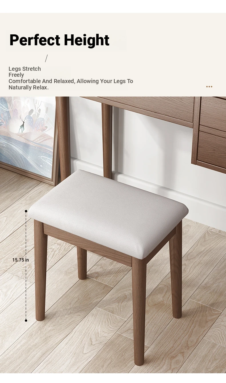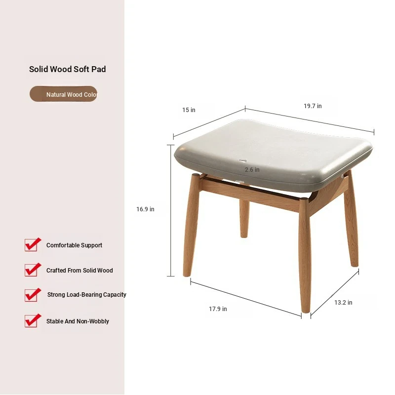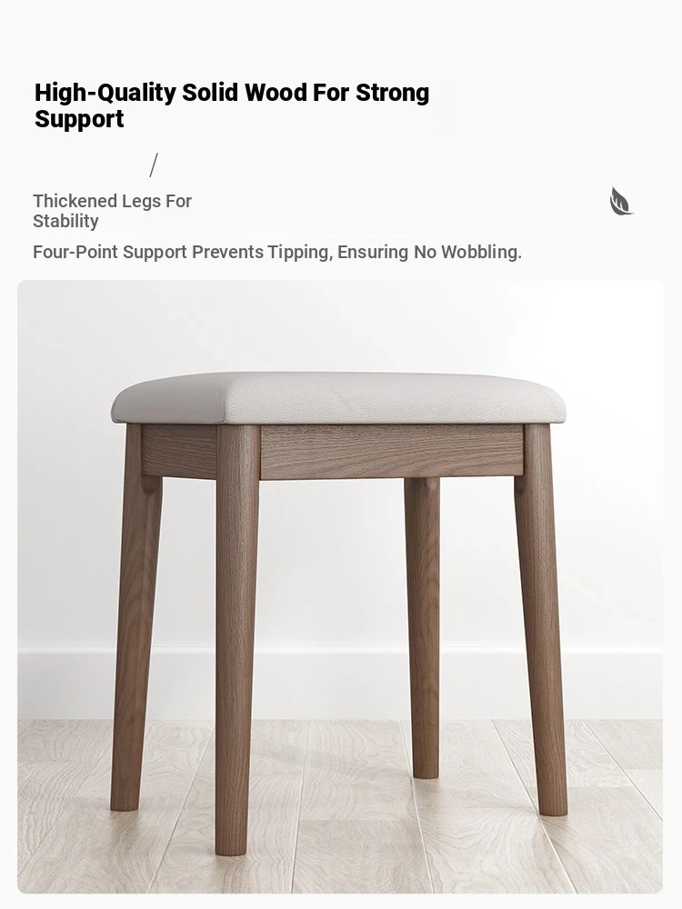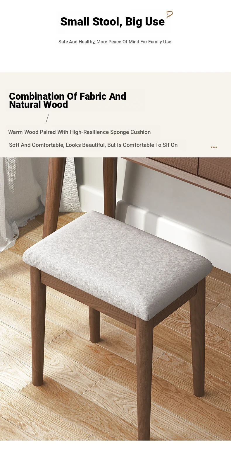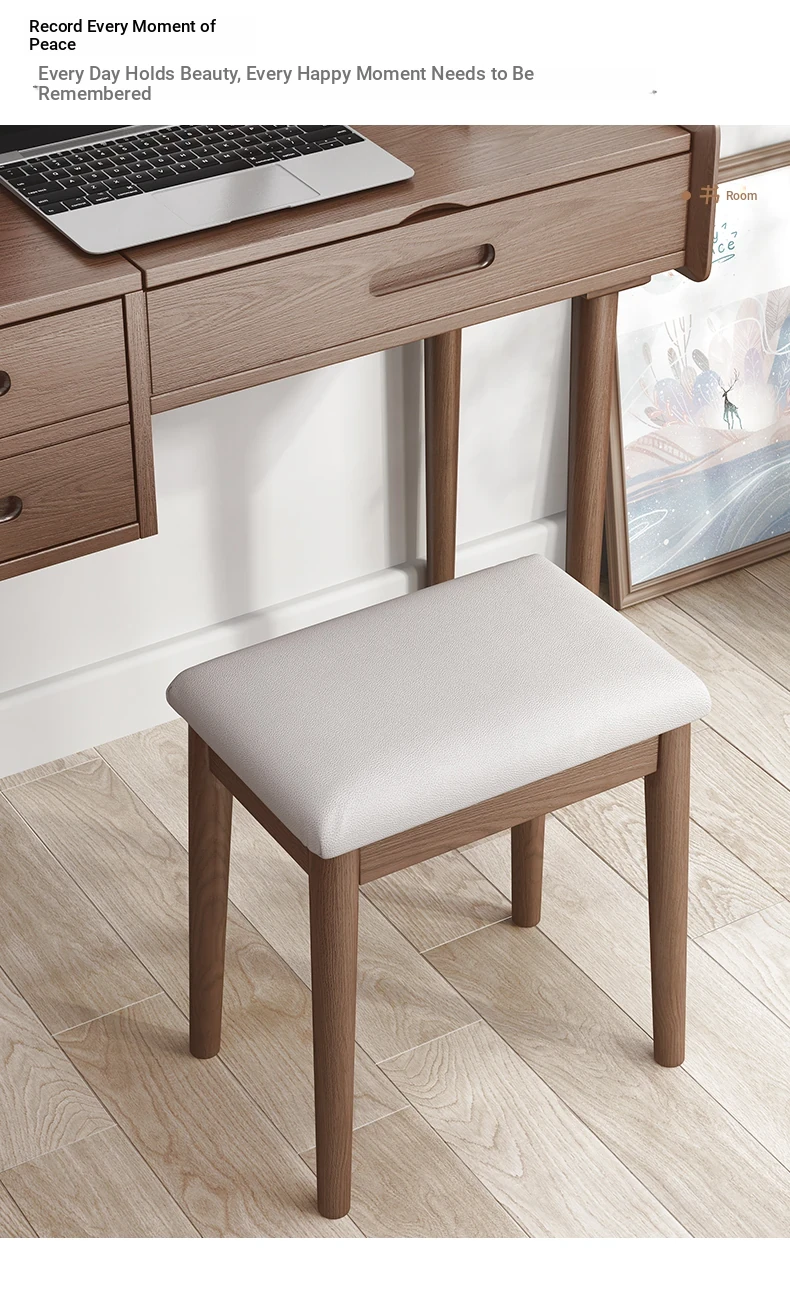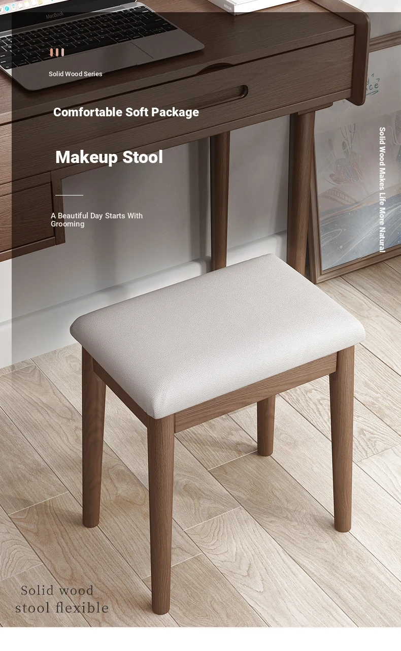 Modern Minimalist Solid Wood Vanity Stool with Soft Cushion - Perfect for Makeup Tables and Bedrooms, Stylish and Comfortable Makeup Chair