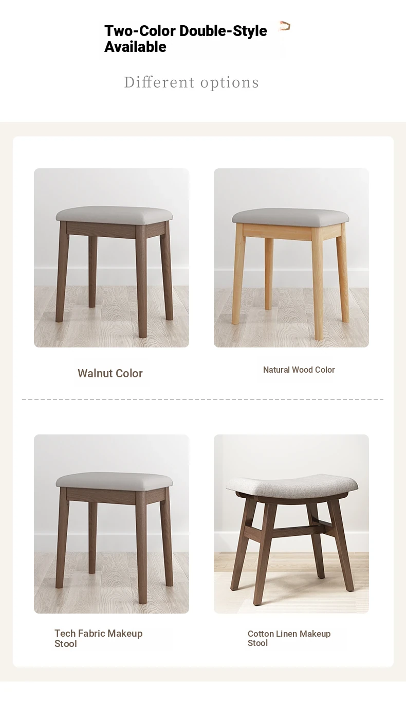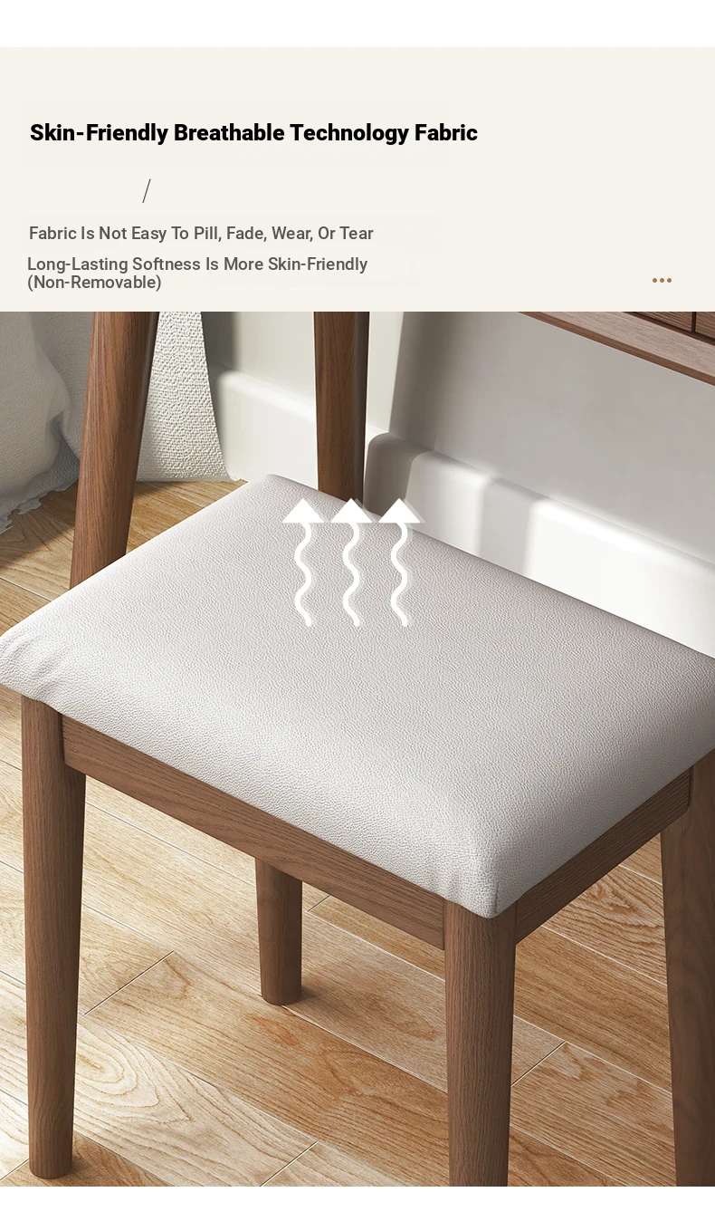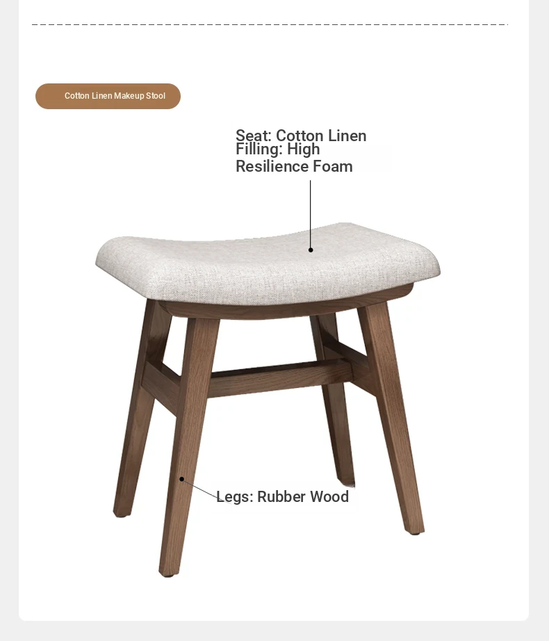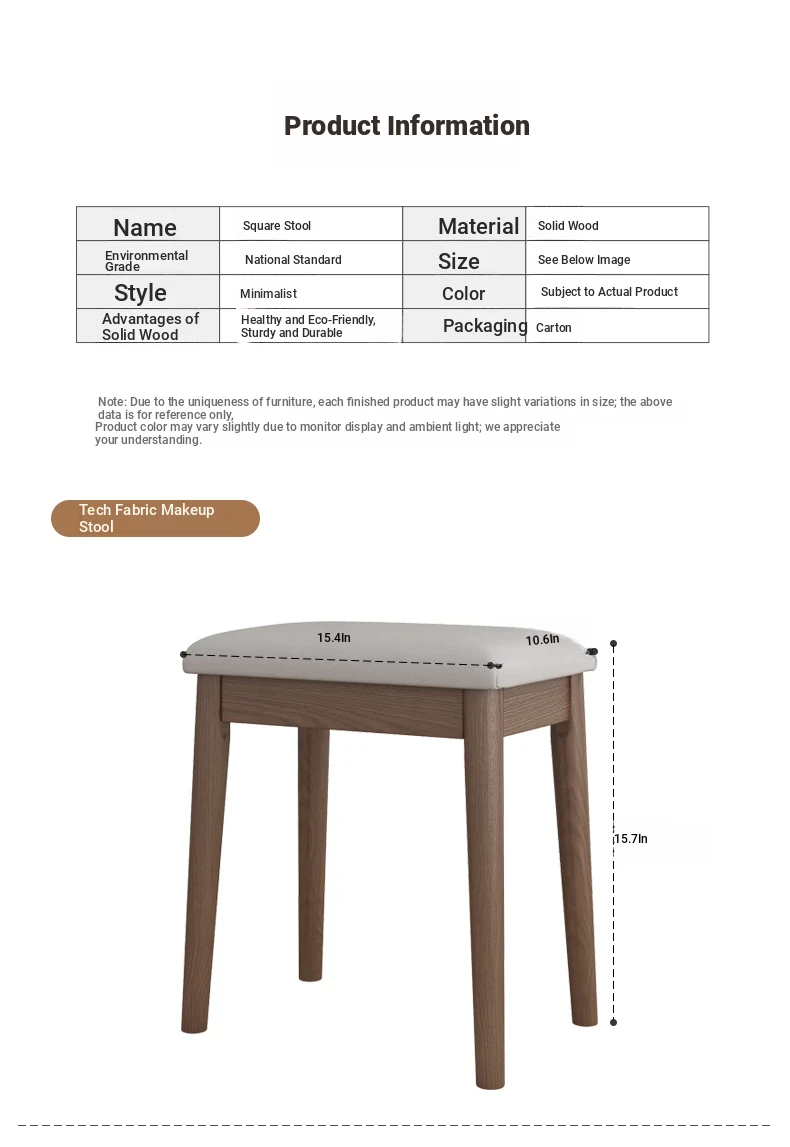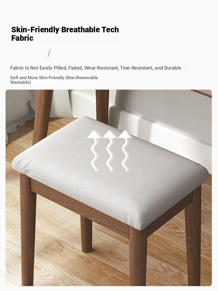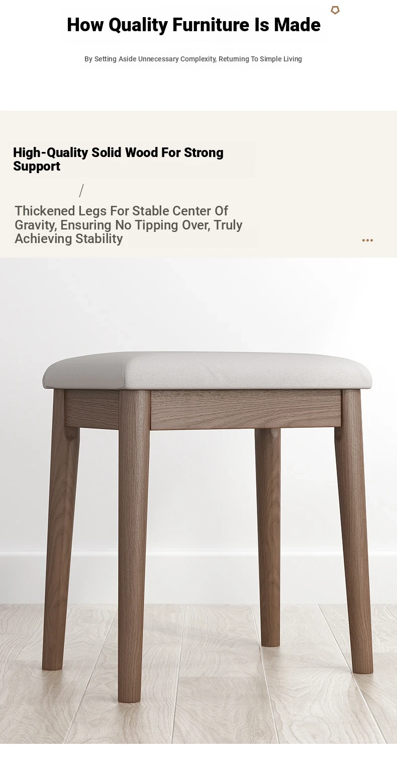Modern Minimalist Solid Wood Vanity Stool with Soft Cushion - Perfect for Makeup Tables and Bedrooms, Stylish and Comfortable Makeup Chair