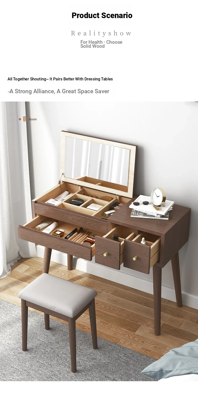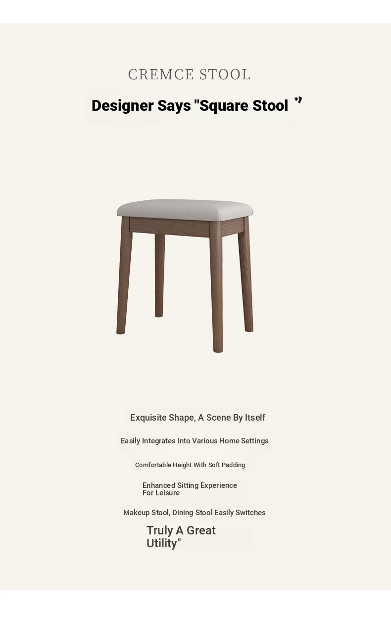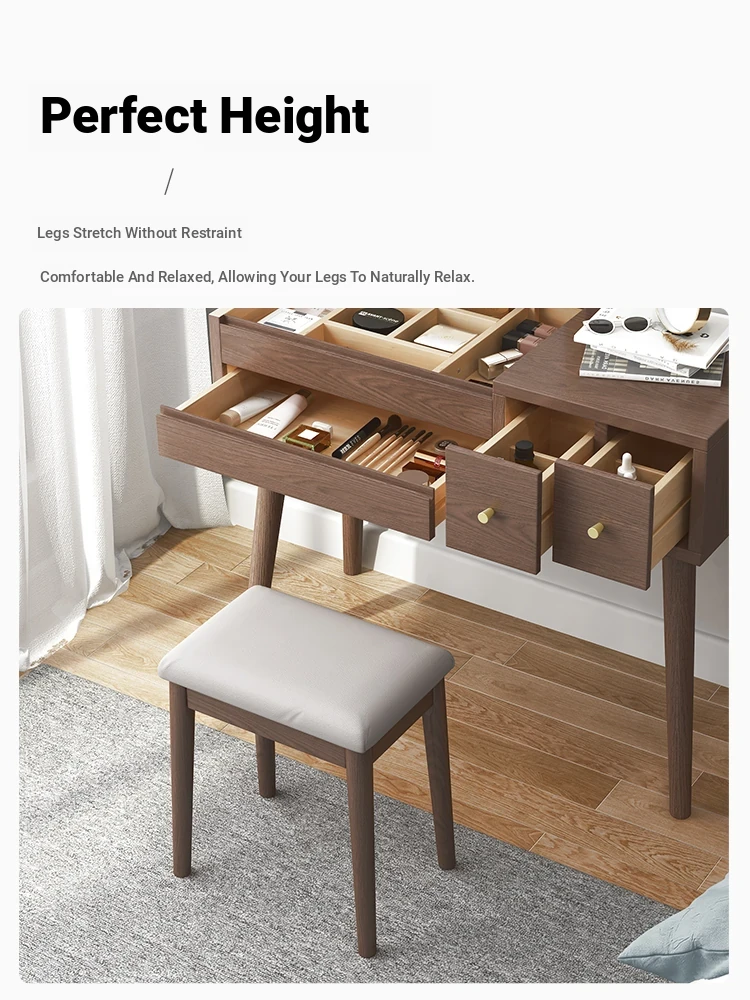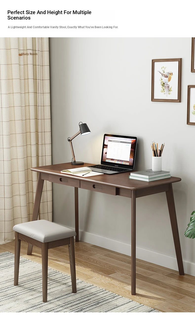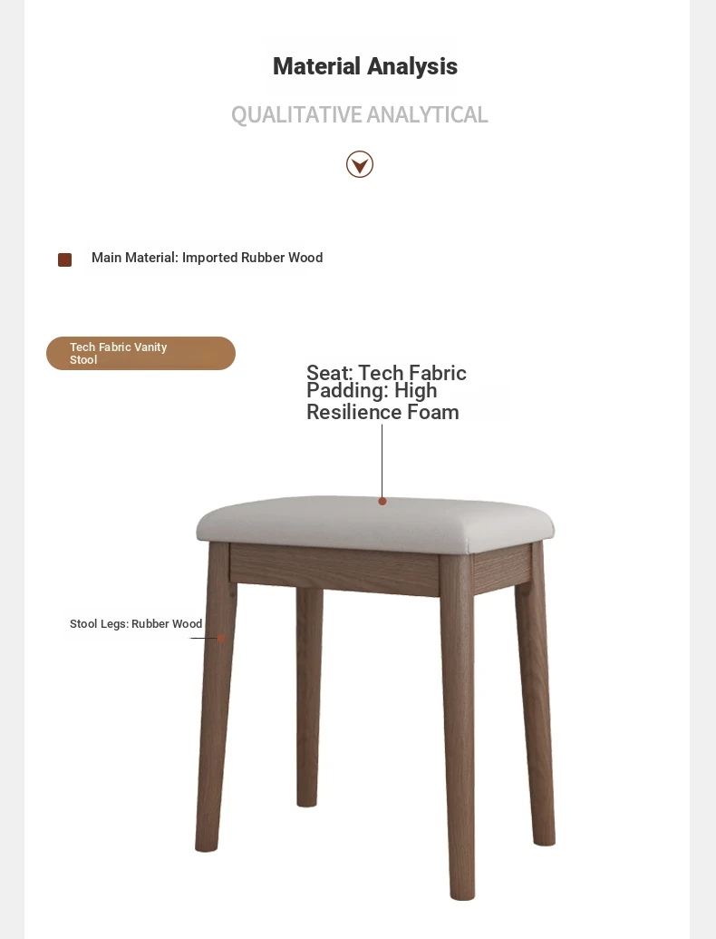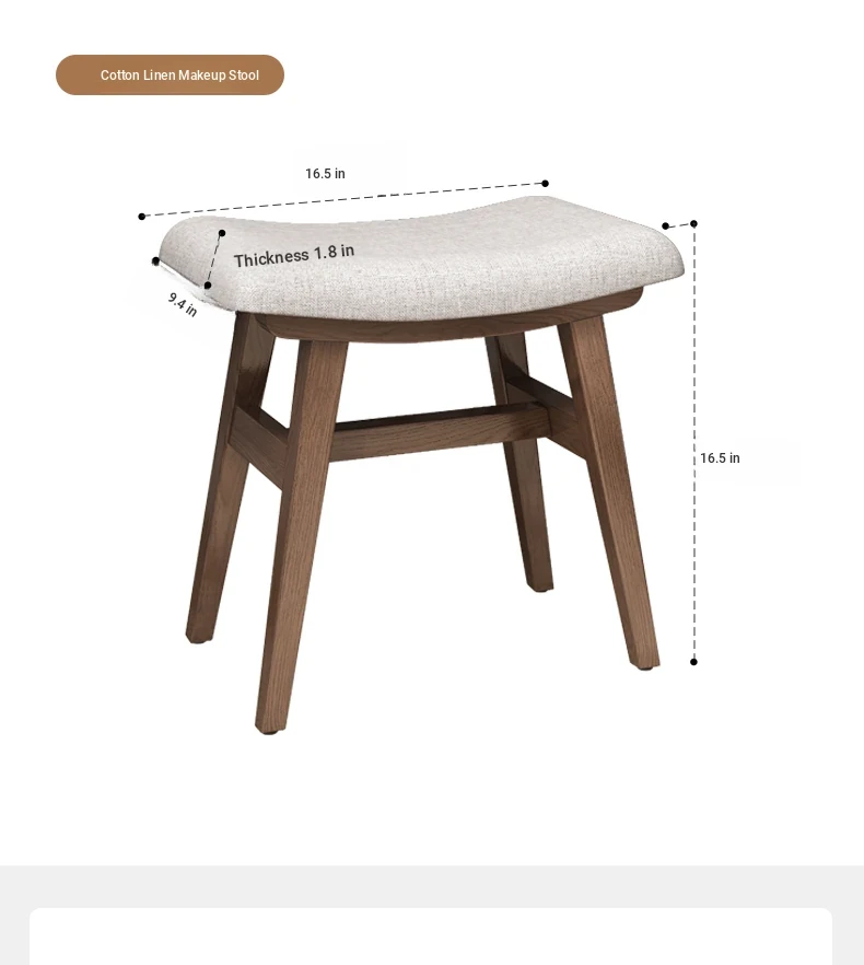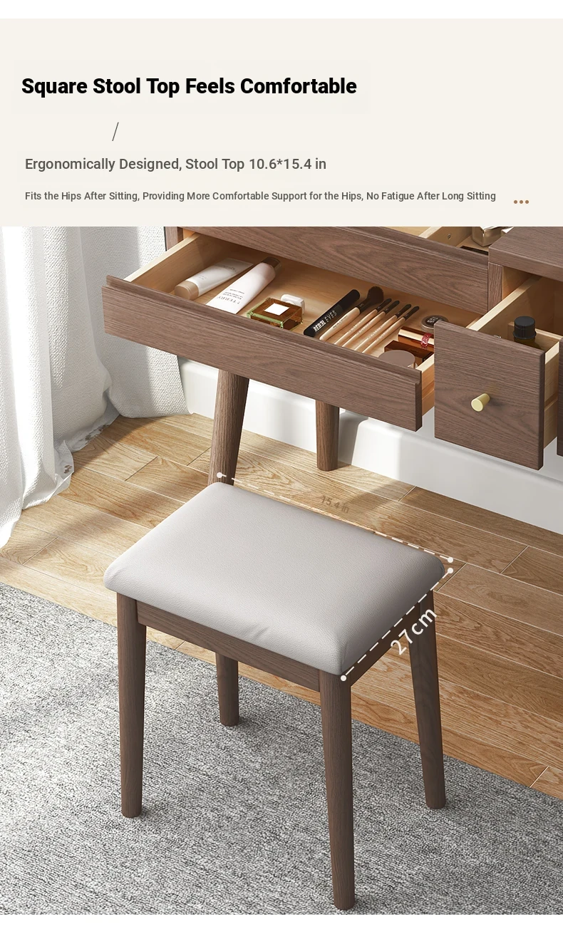 Modern Minimalist Solid Wood Vanity Stool with Soft Cushion - Perfect for Makeup Tables and Bedrooms, Stylish and Comfortable Makeup Chair