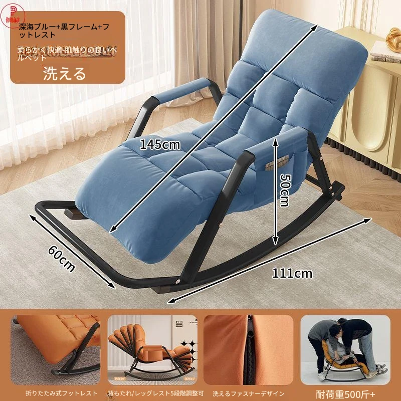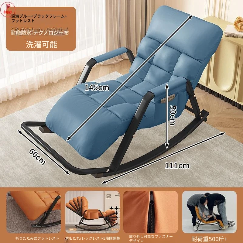 耐磨防水テクノロジー布【洗える】ディープシーブルー + 折りたたみフットレスト黒色カーボンスチールフレーム