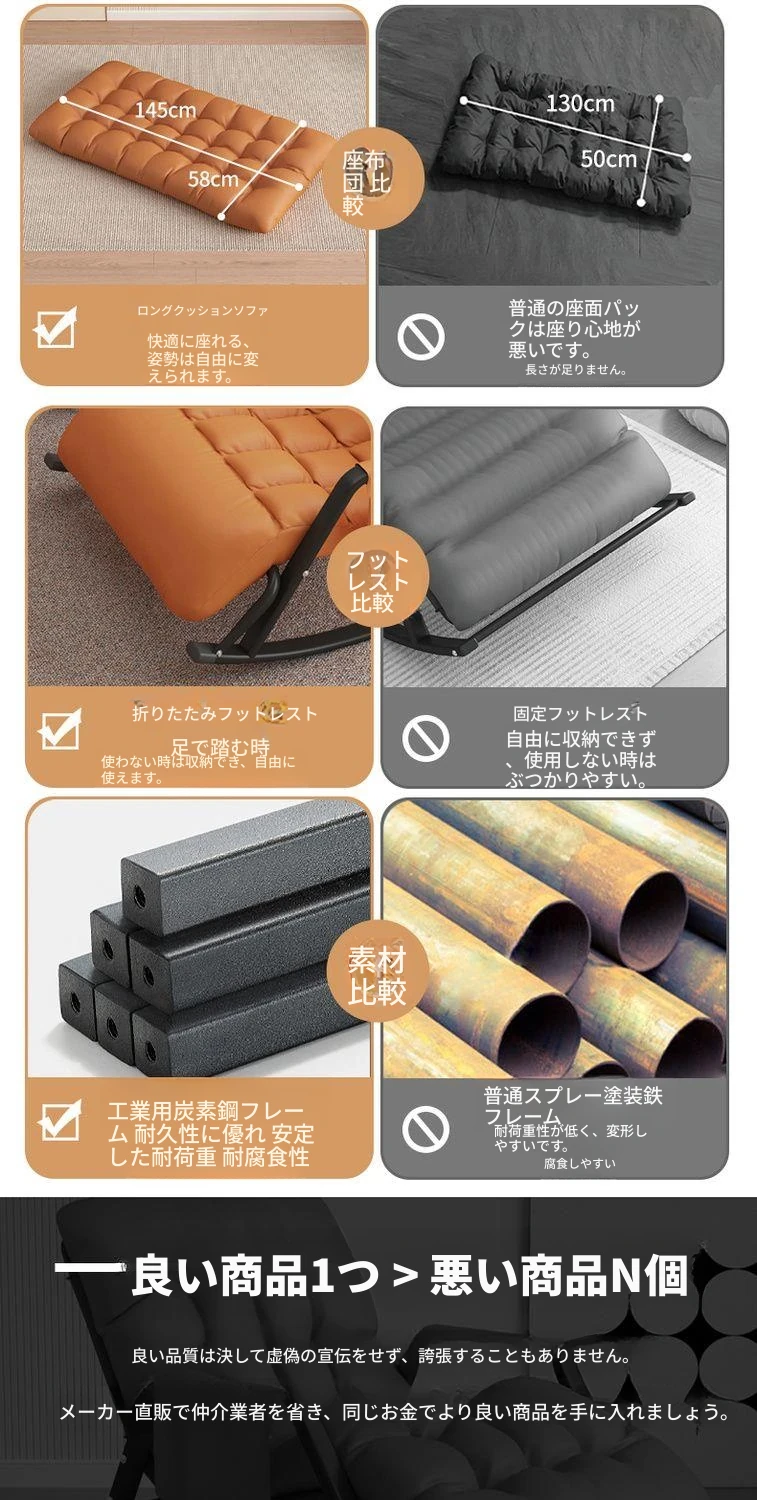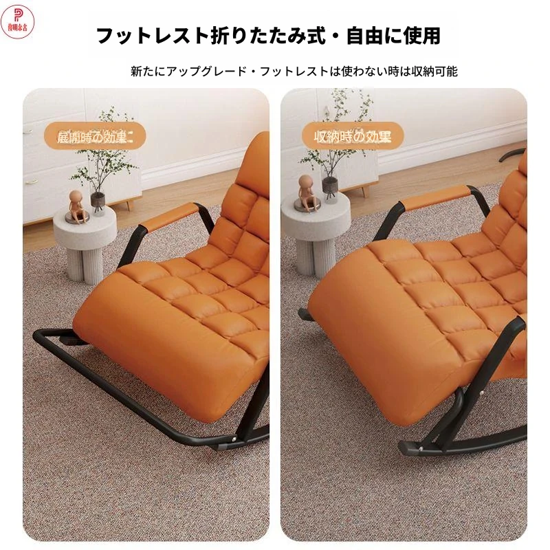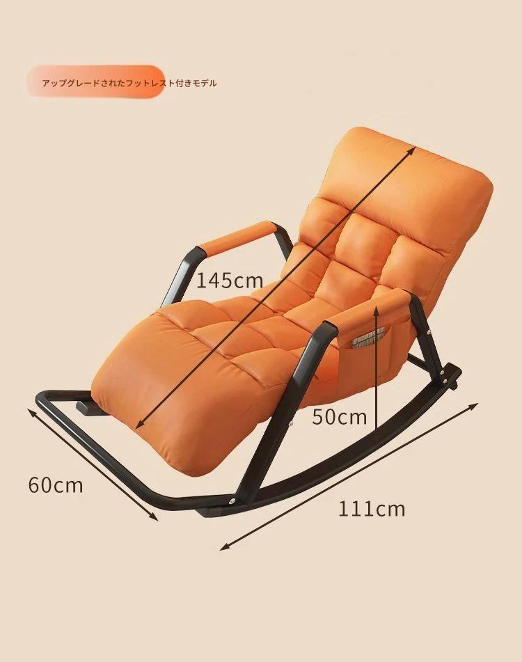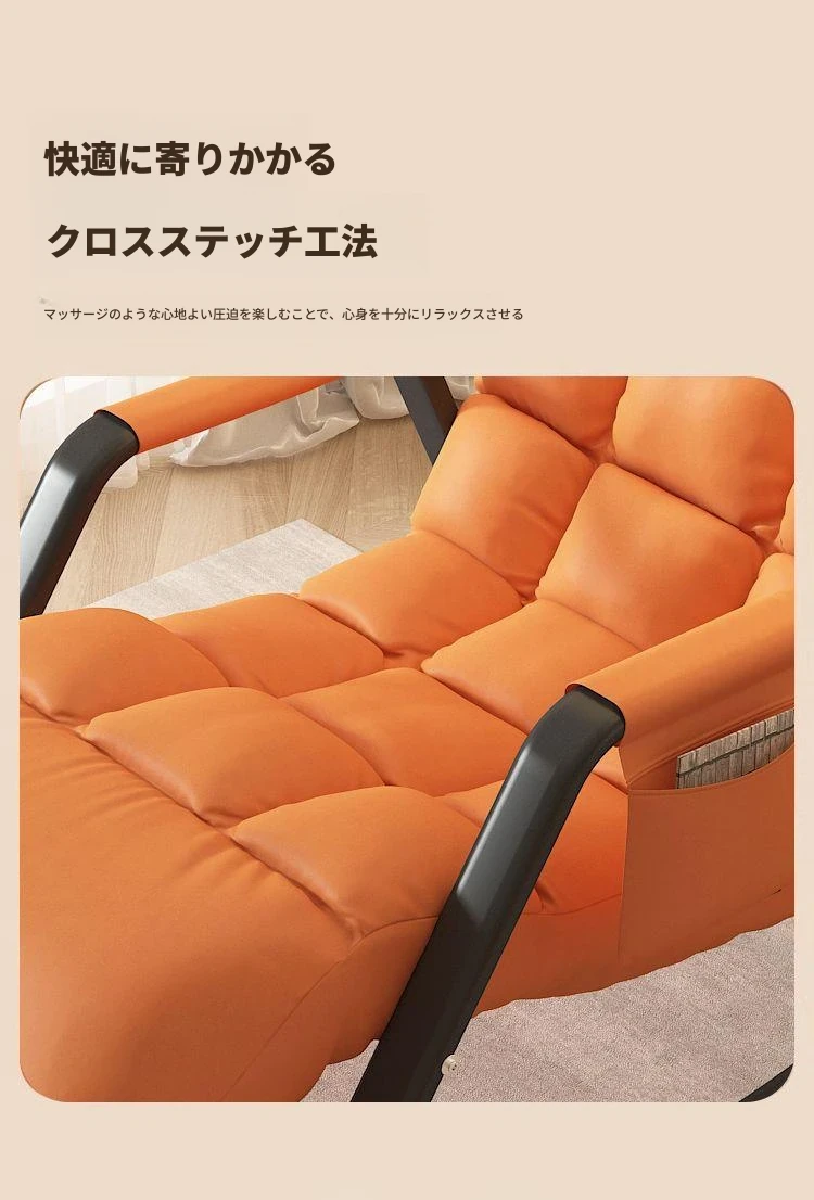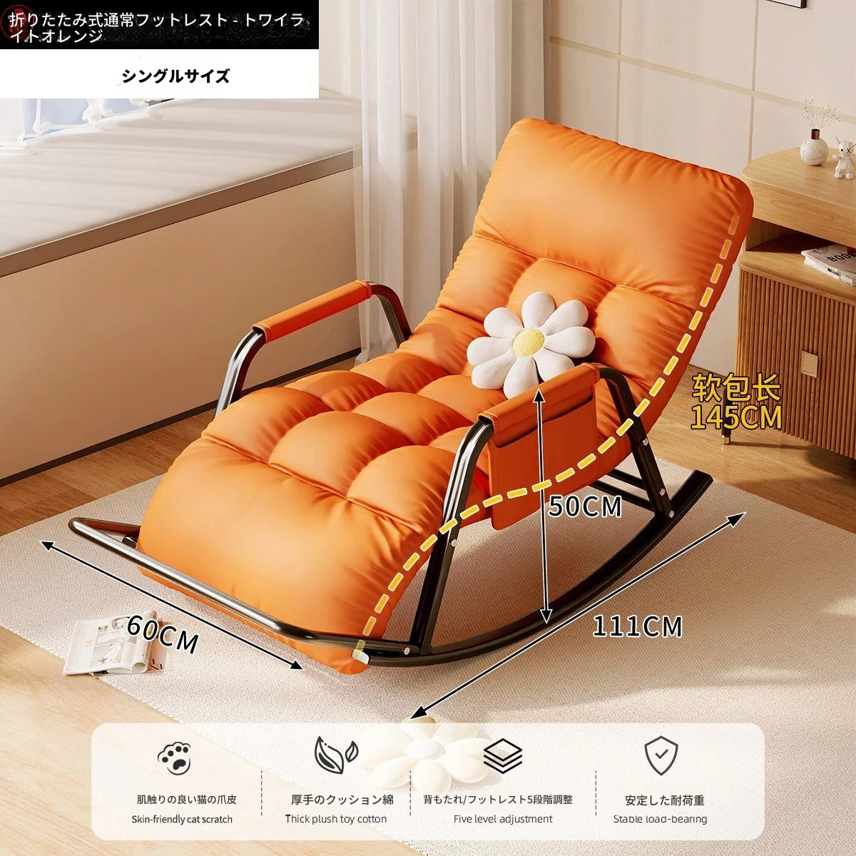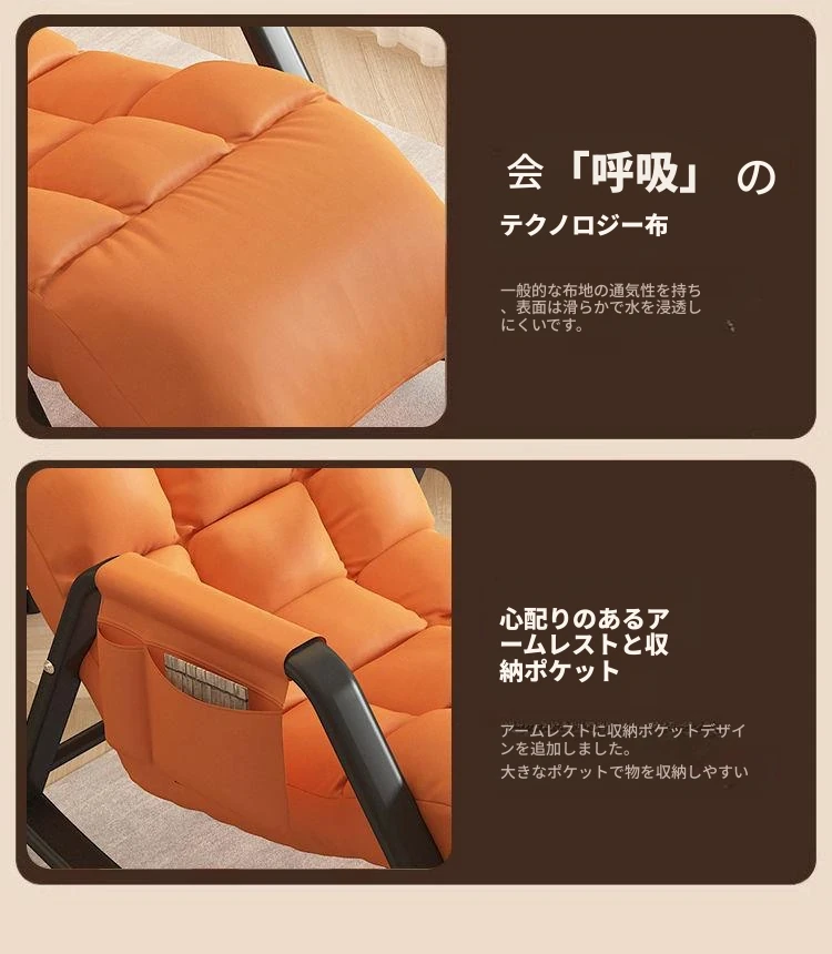 耐磨防水テクノロジー布【洗える】ラグジュアリーオレンジ + 折りたたみフットレスト黒色カーボンスチールフレーム
