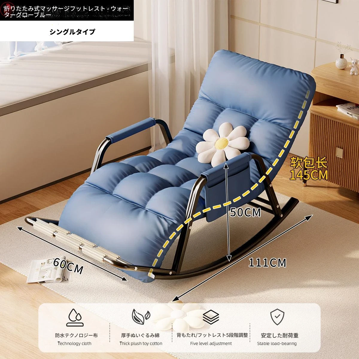 耐磨防水テクノロジー布【洗える】ウォーターグロウブルー + マッサージフットレスト金色カーボンスチールフレーム