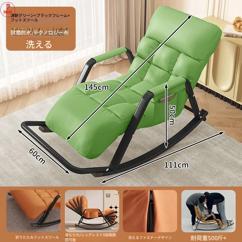 耐磨防水テクノロジー布【洗える】フレッシュグリーン + 折りたたみフットレスト黒色カーボンスチールフレーム