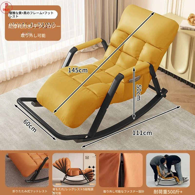 耐磨防水テクノロジー布【洗える】エレガントイエロー + 折りたたみフットレスト黒色カーボンスチールフレーム