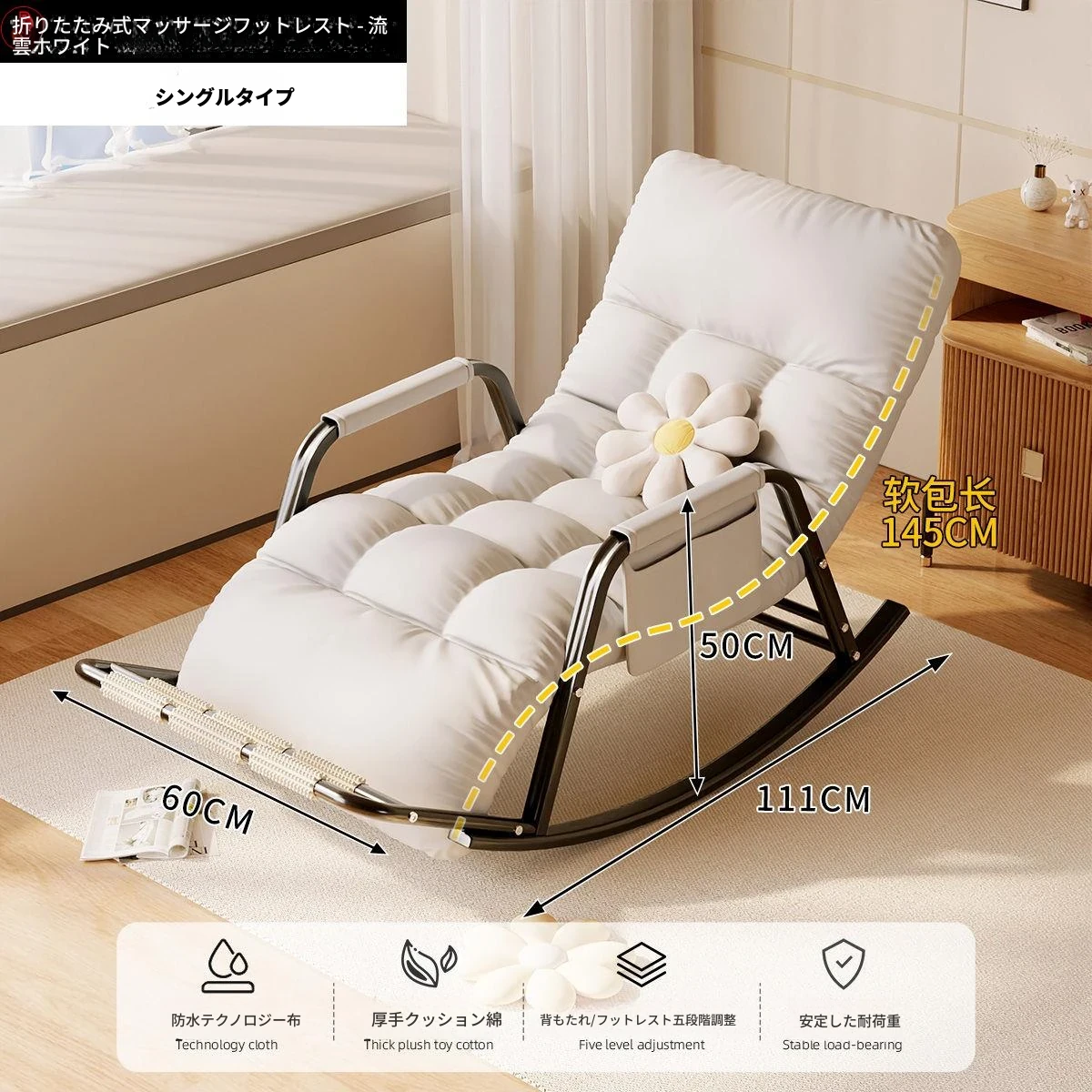耐磨防水テクノロジー布【洗える】フロウクラウドホワイト + マッサージフットレスト金色カーボンスチールフレーム