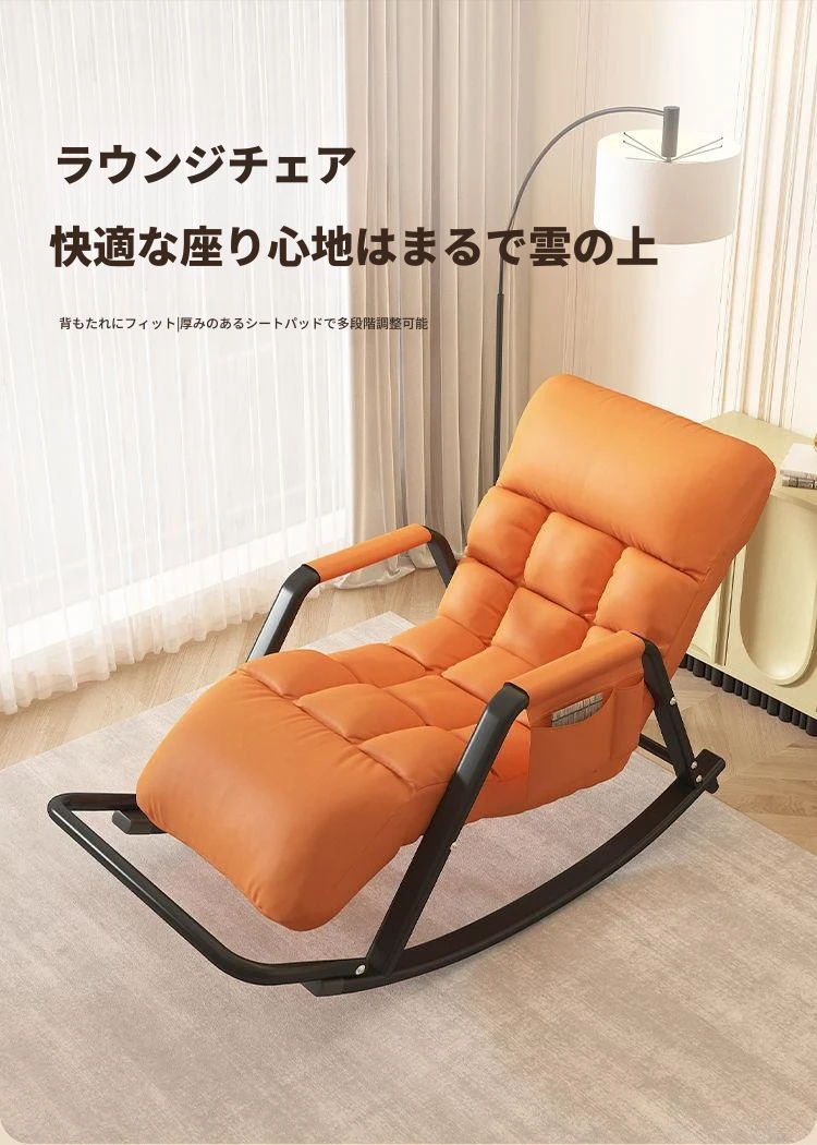 繊細で肌触りの良いキャットスクラッチレザー【洗える】トワイライトオレンジ + 折りたたみフットレスト黒色カーボンスチールフレーム