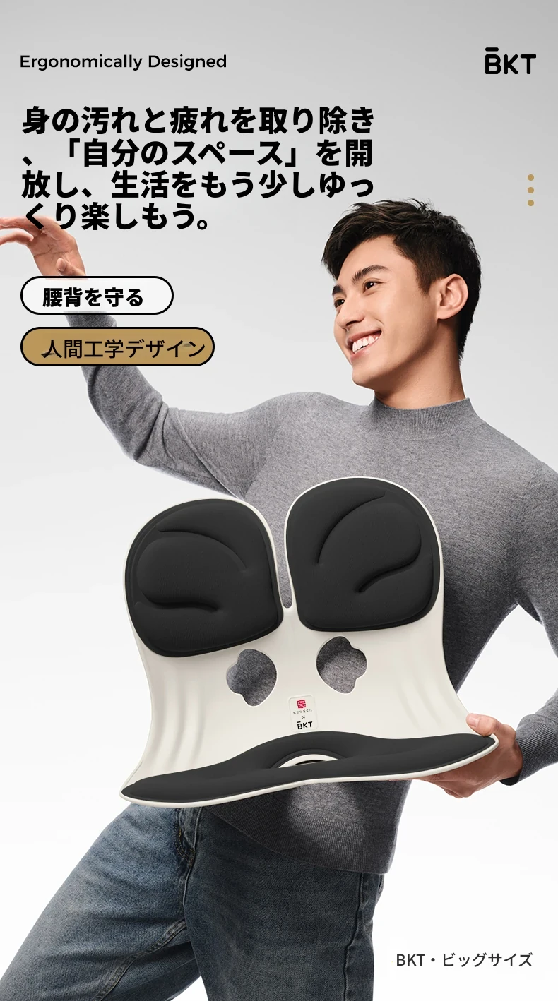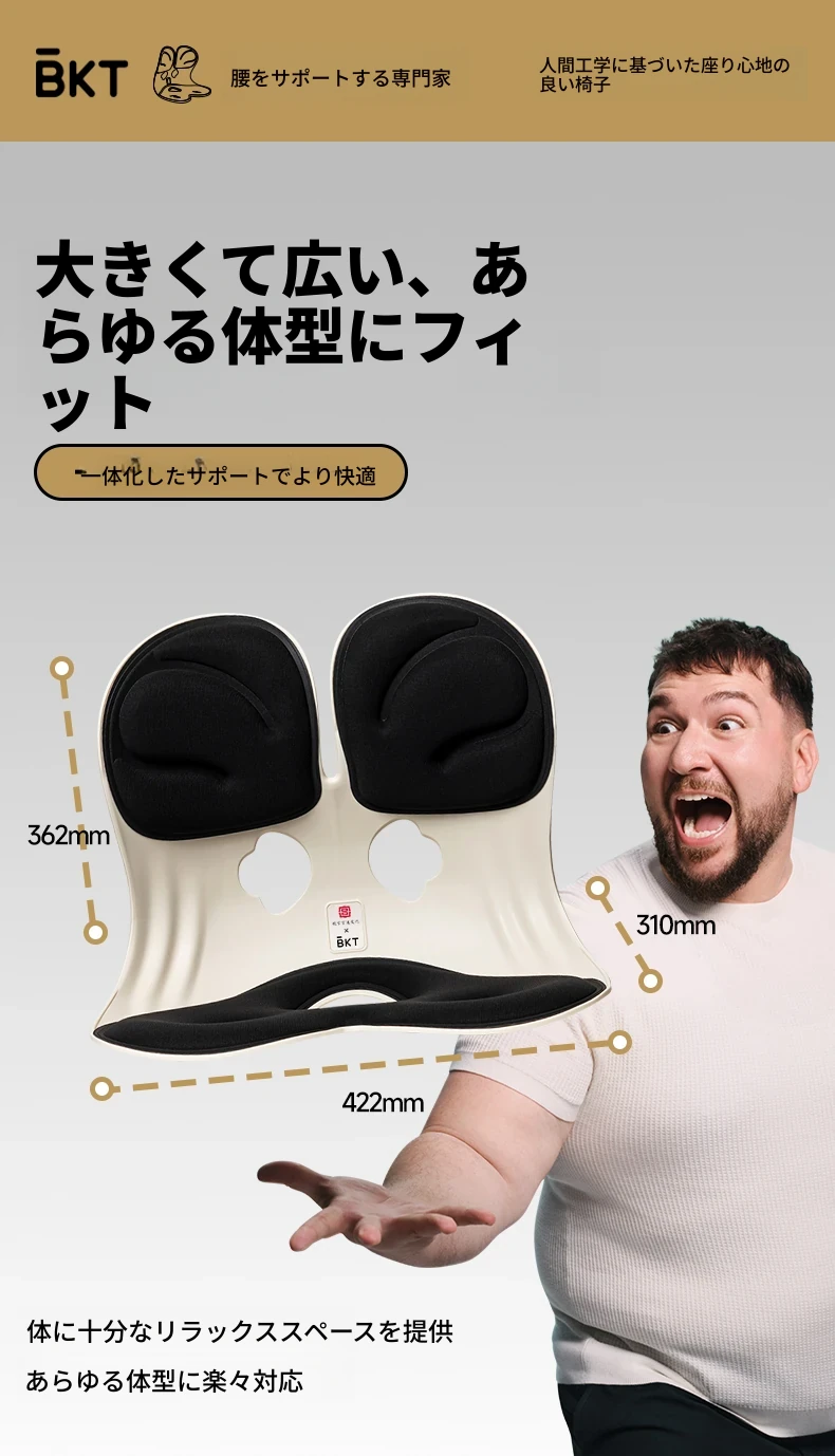 BKTエルゴノミクス腰サポートクッション|公式フラッグシップストア|長時間座っても快適!ベッドでの背中支え枕としても最適!あなたの姿勢をサポートします!