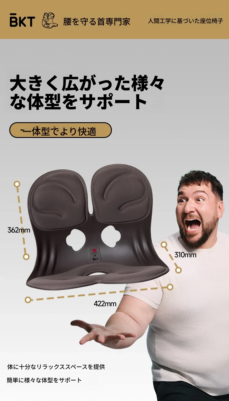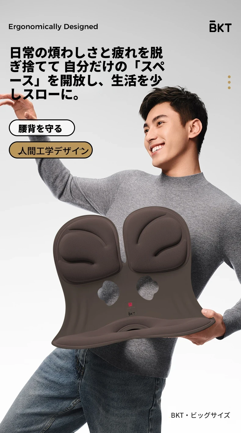 BKT公式フラッグシップストア 人間工学デザインの腰サポートクッション!長時間座っても快適、ベッドでの背中支えにも最適な姿勢保持枕!
