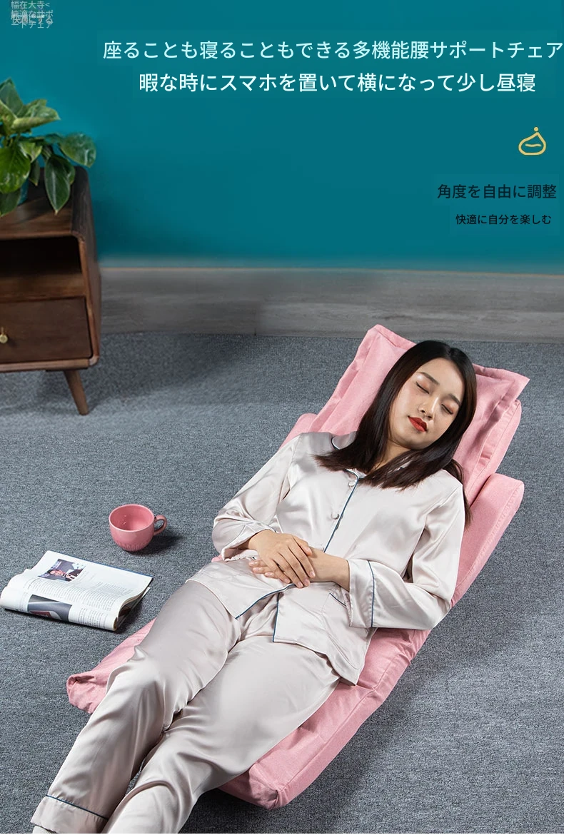 延長リネン布ピンク5段(クッション付き) 頭・腰・脚三段調整可