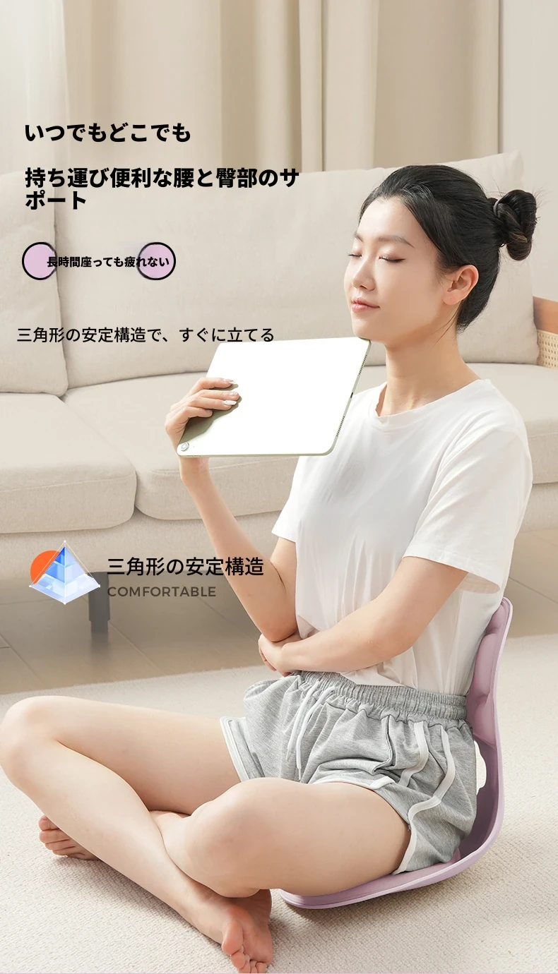 快適な座り心地!ベッドサイド用クッション付きリラックスソファ、窓際や畳での使用に最適。腰をしっかりサポートし、バルコニーや寝室での授乳にもぴったりな万能マットです。
