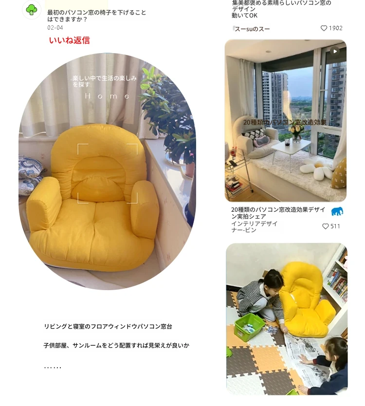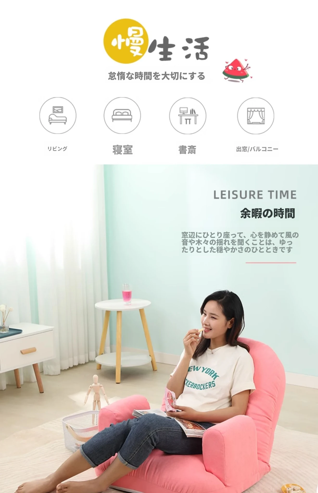 おしゃれで快適なリクライニングソファ!寝そべっても、リラックスしてもOK!窓際やタタミ、ベッドルームにぴったりの授乳チェア。シングルソファとしても使える、バルコニーにも最適な背もたれ付きリラックスチェア!
