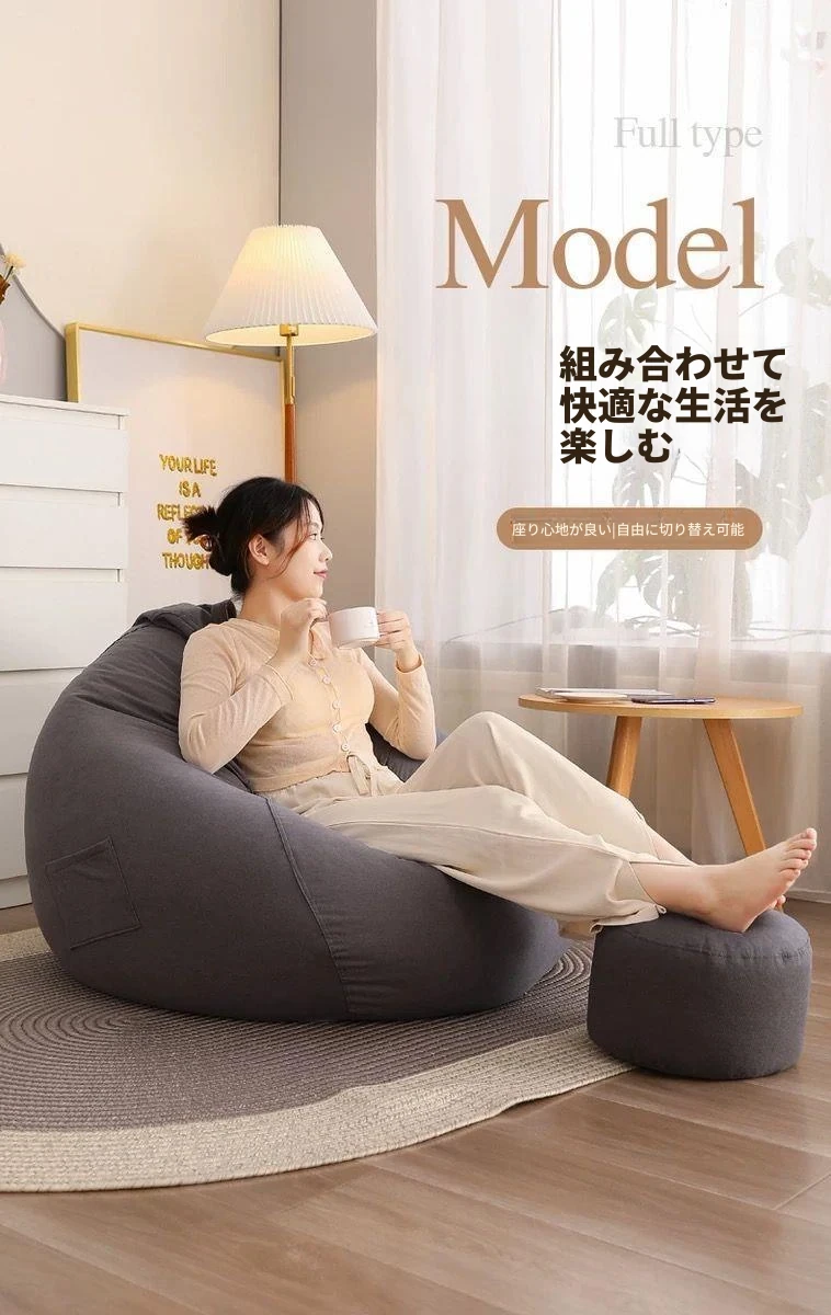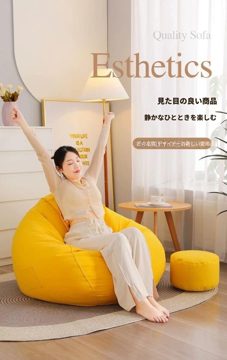リラックスソファ 一人用 ビーンズバッグ 人間用犬の巣 バルコニーや寝室に最適!タタミスタイルのクリーム色小ソファ。寝転んでも、ぐっすり眠れる快適さ!送料無料でお届けします!