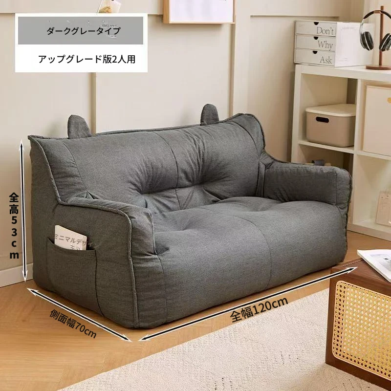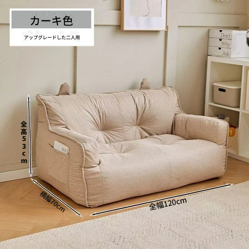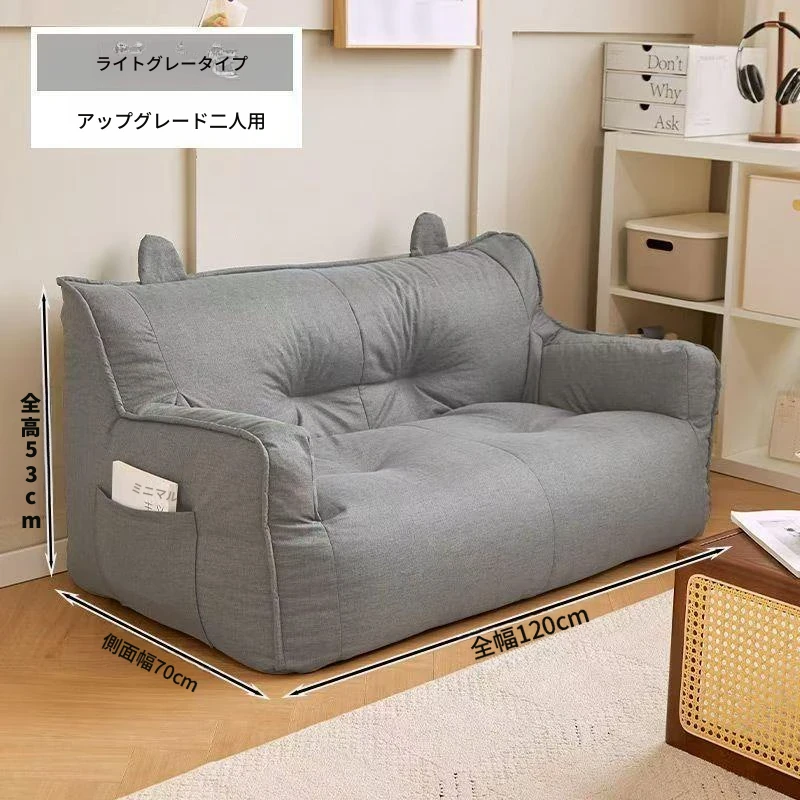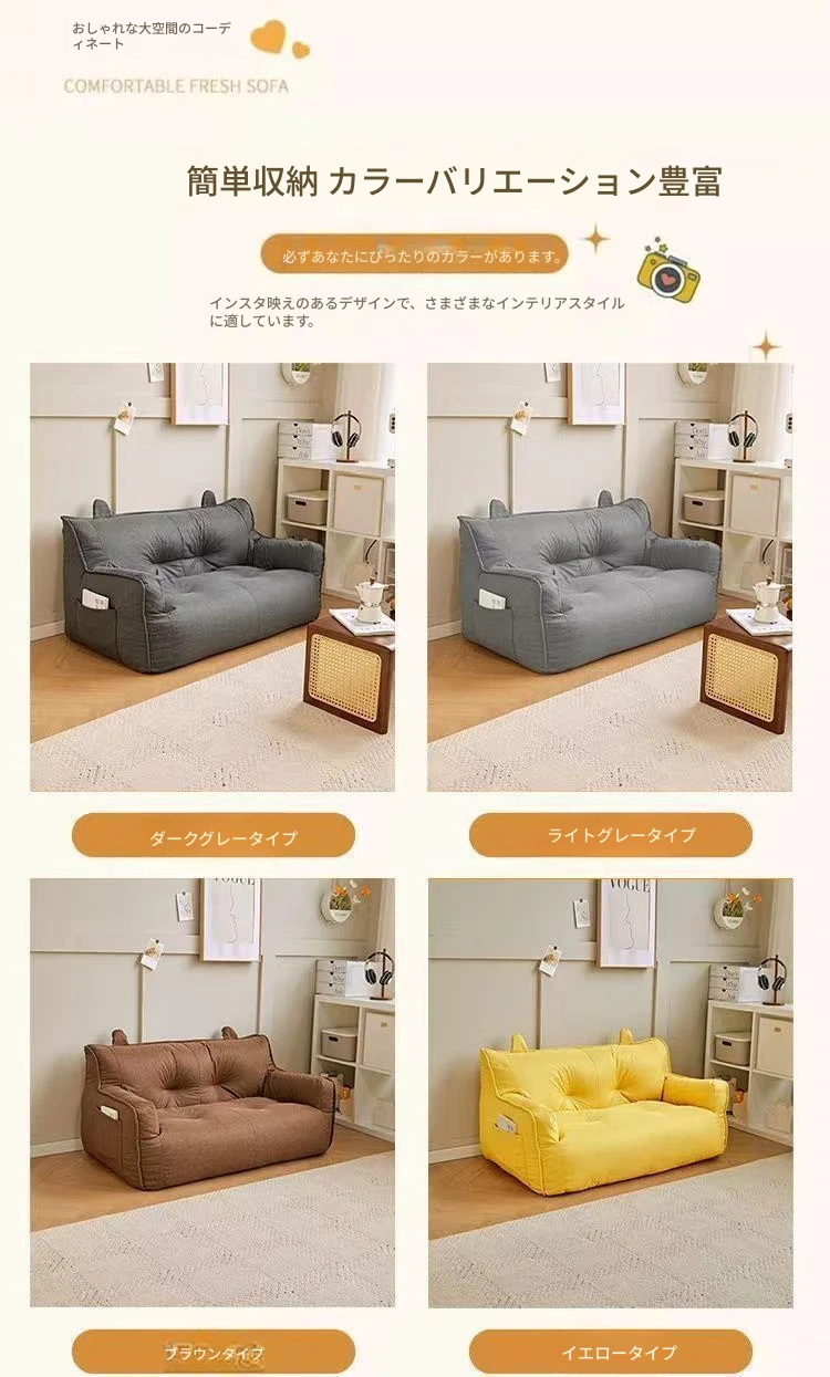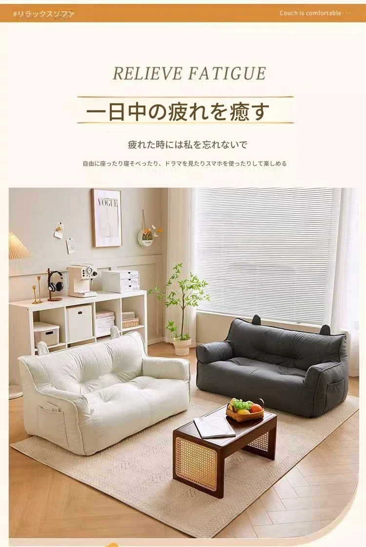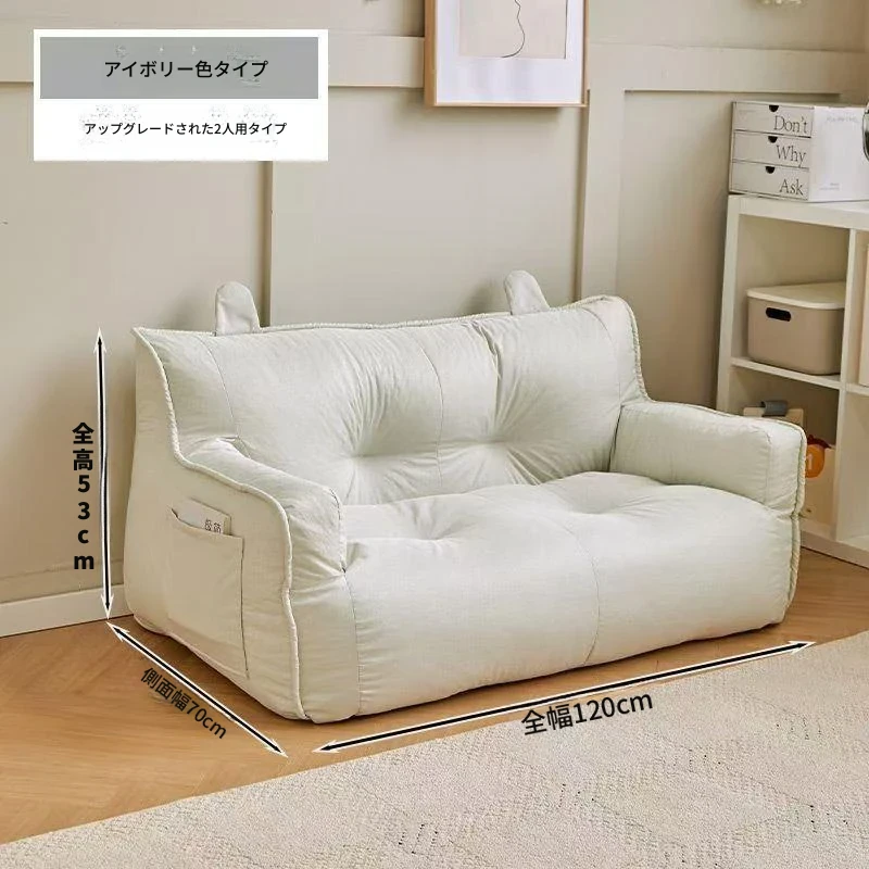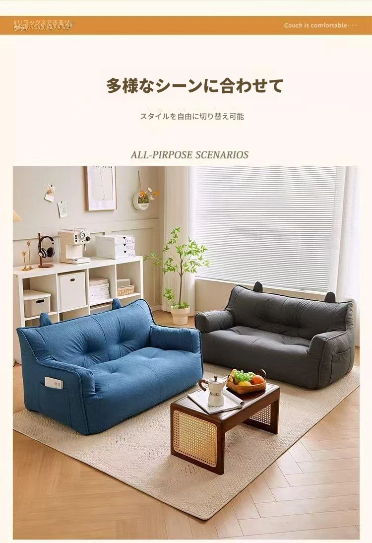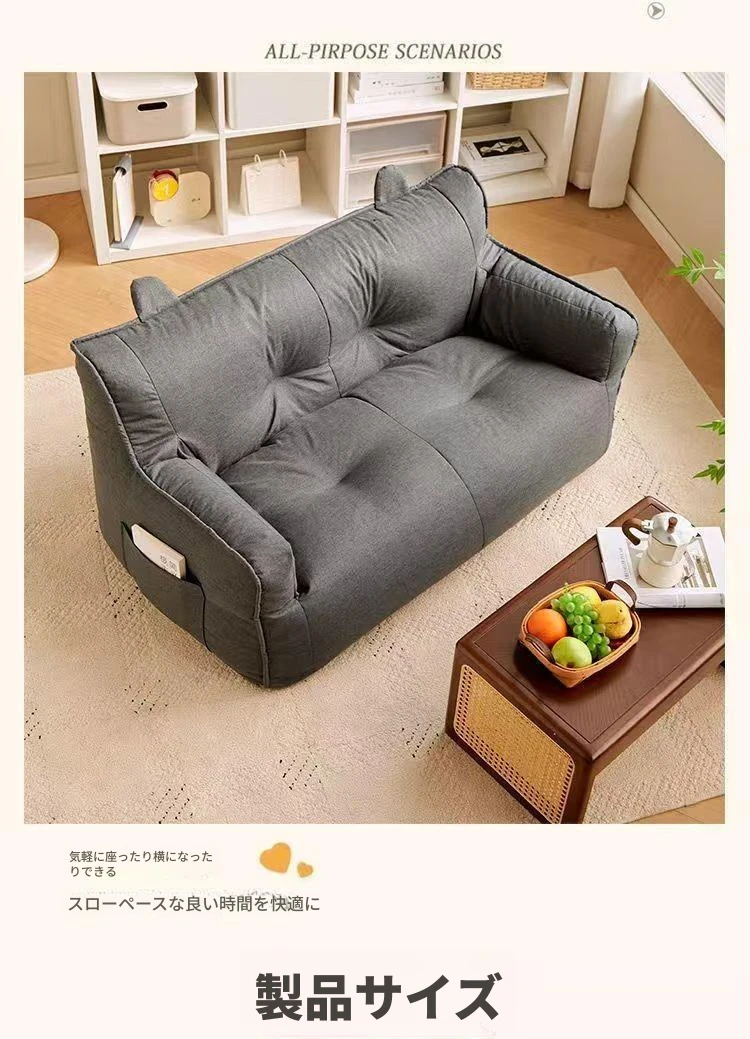 小さな耳の怠け者ソファ - シンプルで使いやすい、リビングやバルコニーに最適な二人掛けソファ。心地よいくつろぎの空間を提供します。タタミスタイルにもぴったり!