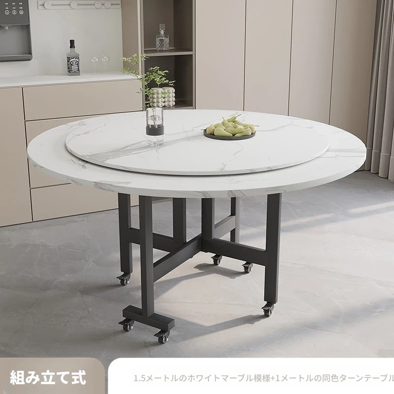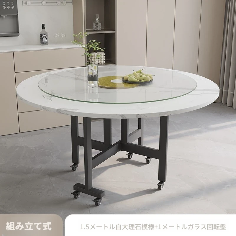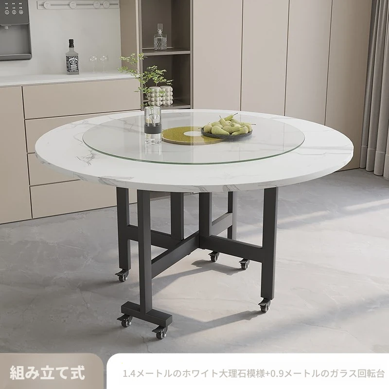 1.4メートル白大理石模様+0.9メートルガラス回転台 組み立て式