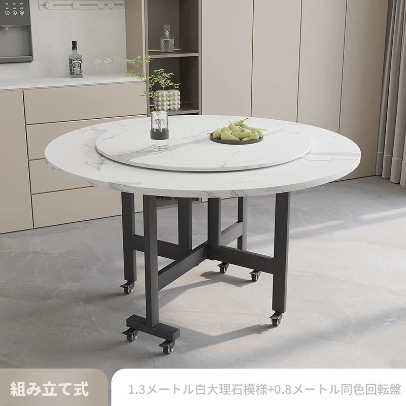 1.3メートル白大理石模様+0.8メートルガラス回転台 組み立て式