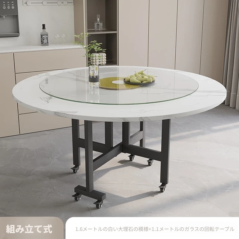 1.6メートル白大理石模様+1.1メートルガラス回転台 組み立て式