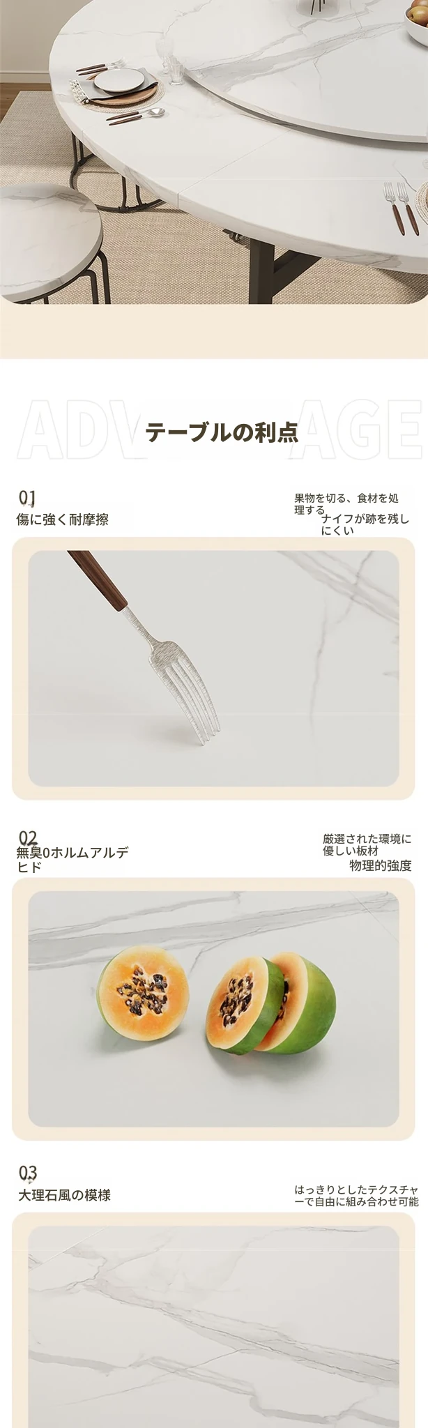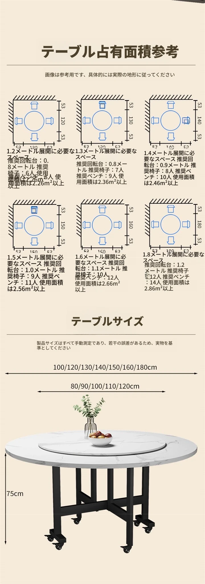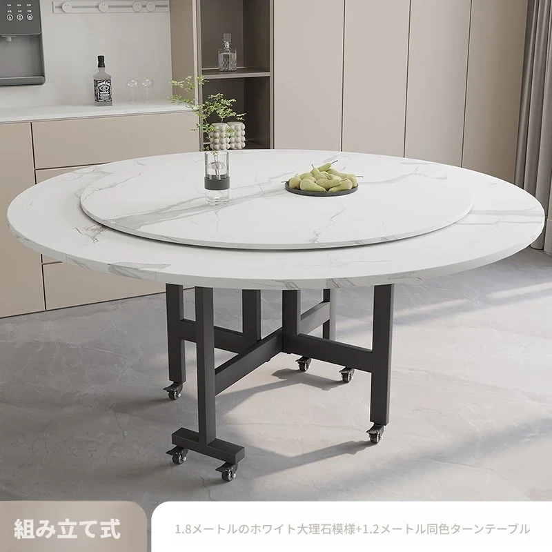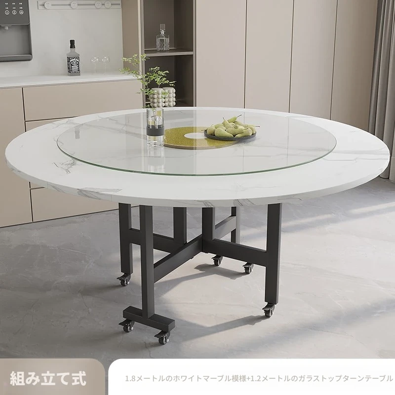 1.8メートル白大理石模様+1.2メートルガラス回転台 組み立て式