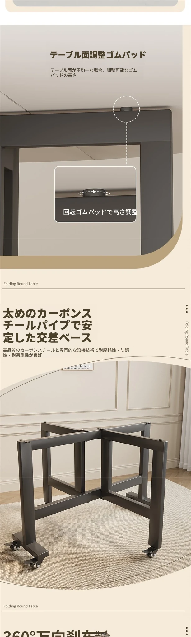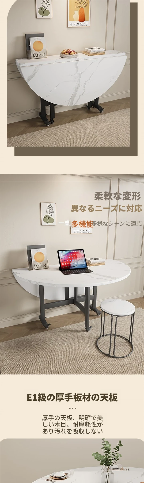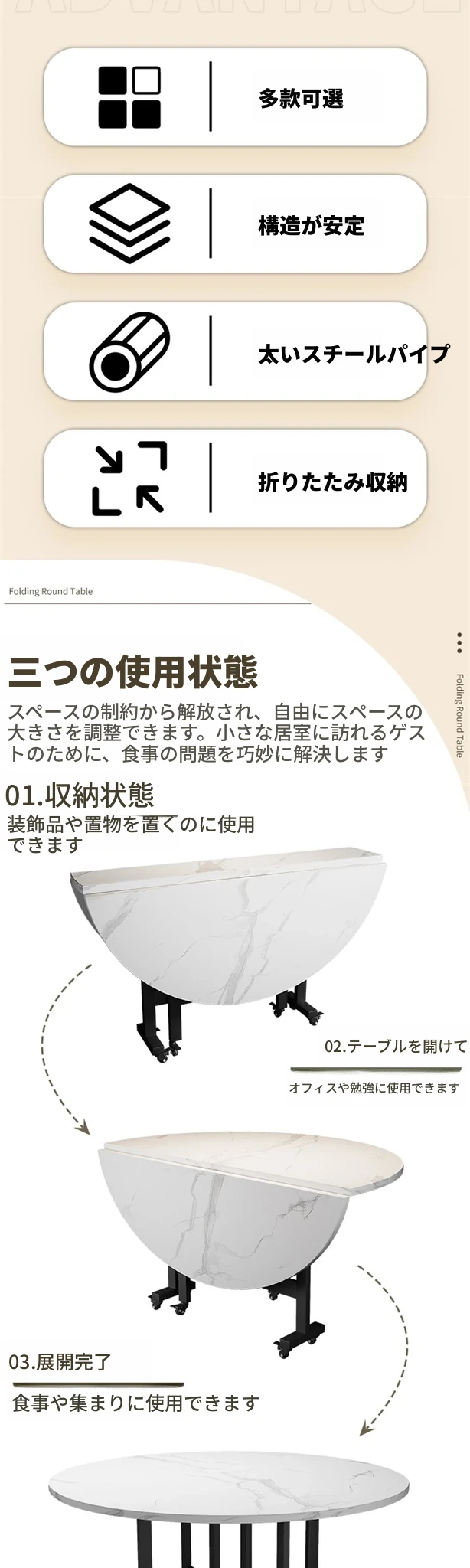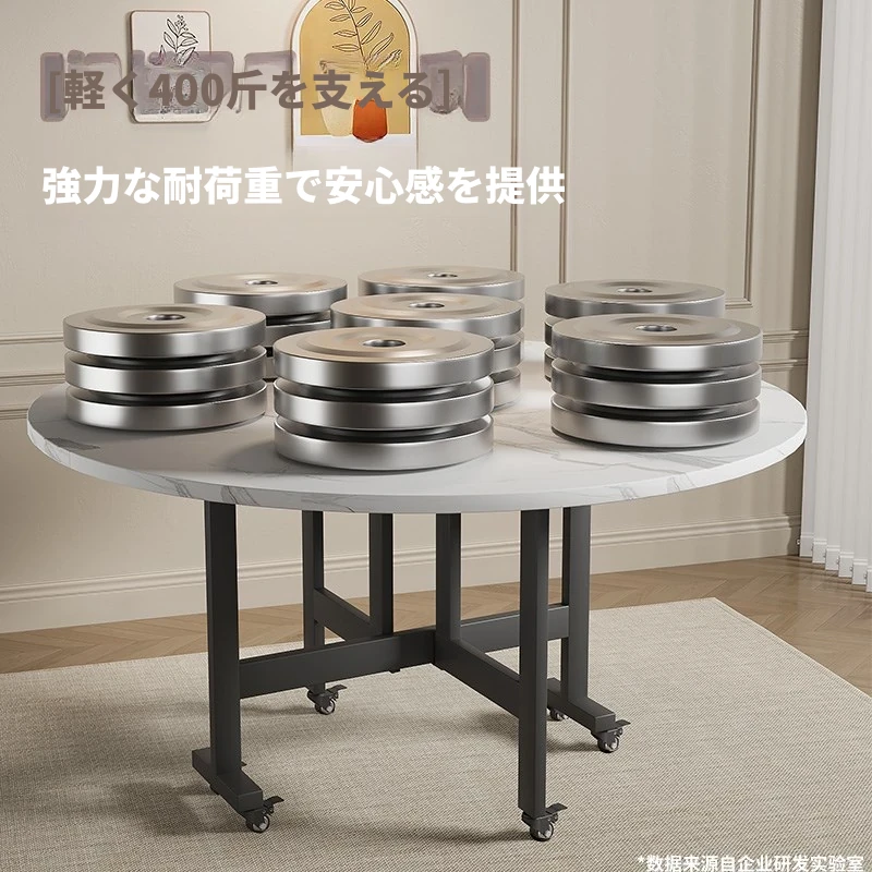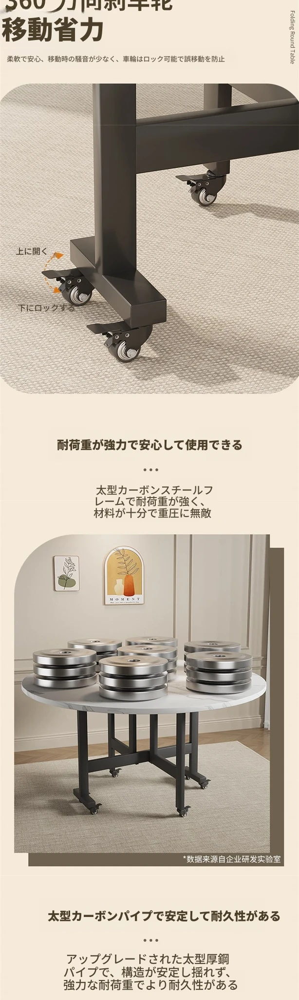 折りたたみ式円形テーブル - 家庭用、複数人の集まりに最適!移動も簡単、収納も便利な多機能デザイン。狭いスペースにもぴったりなシンプルで使いやすい食事テーブルです。