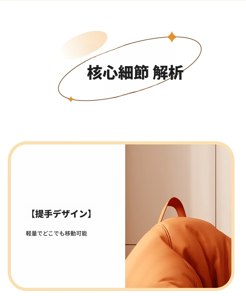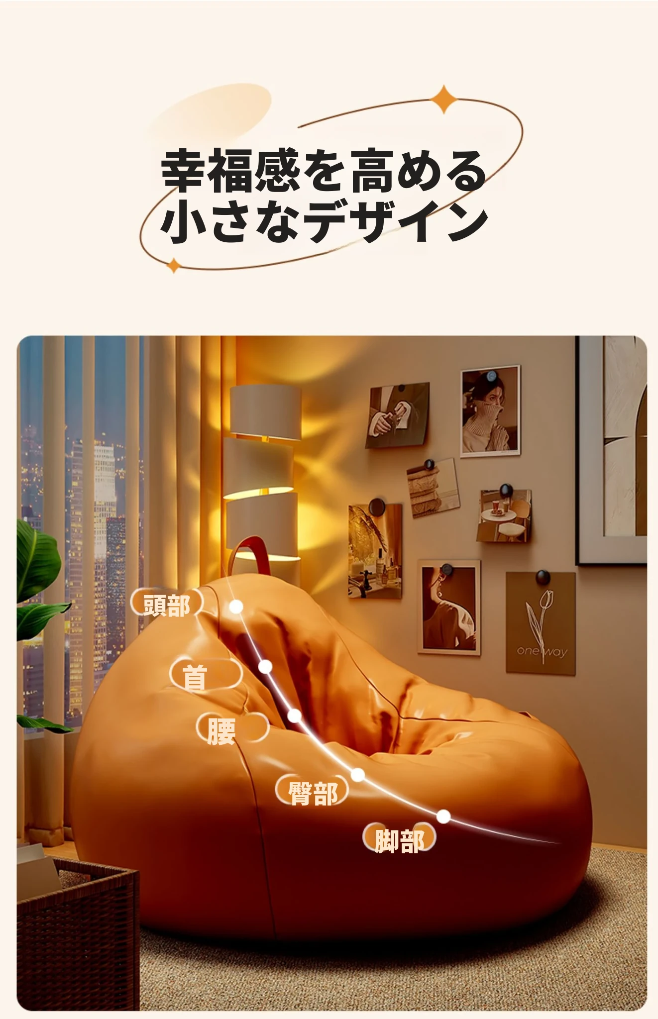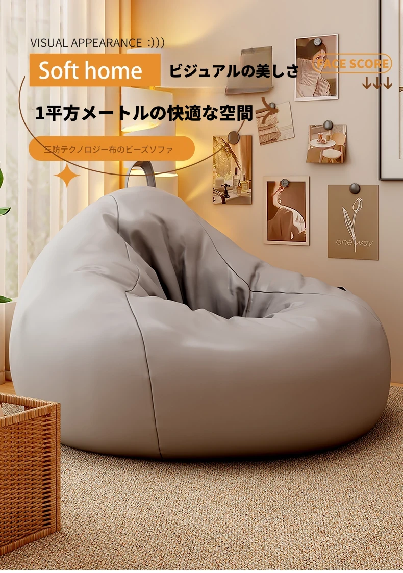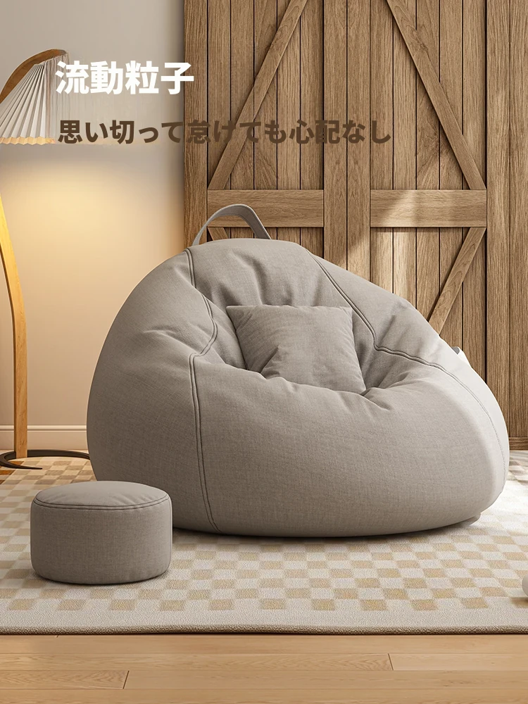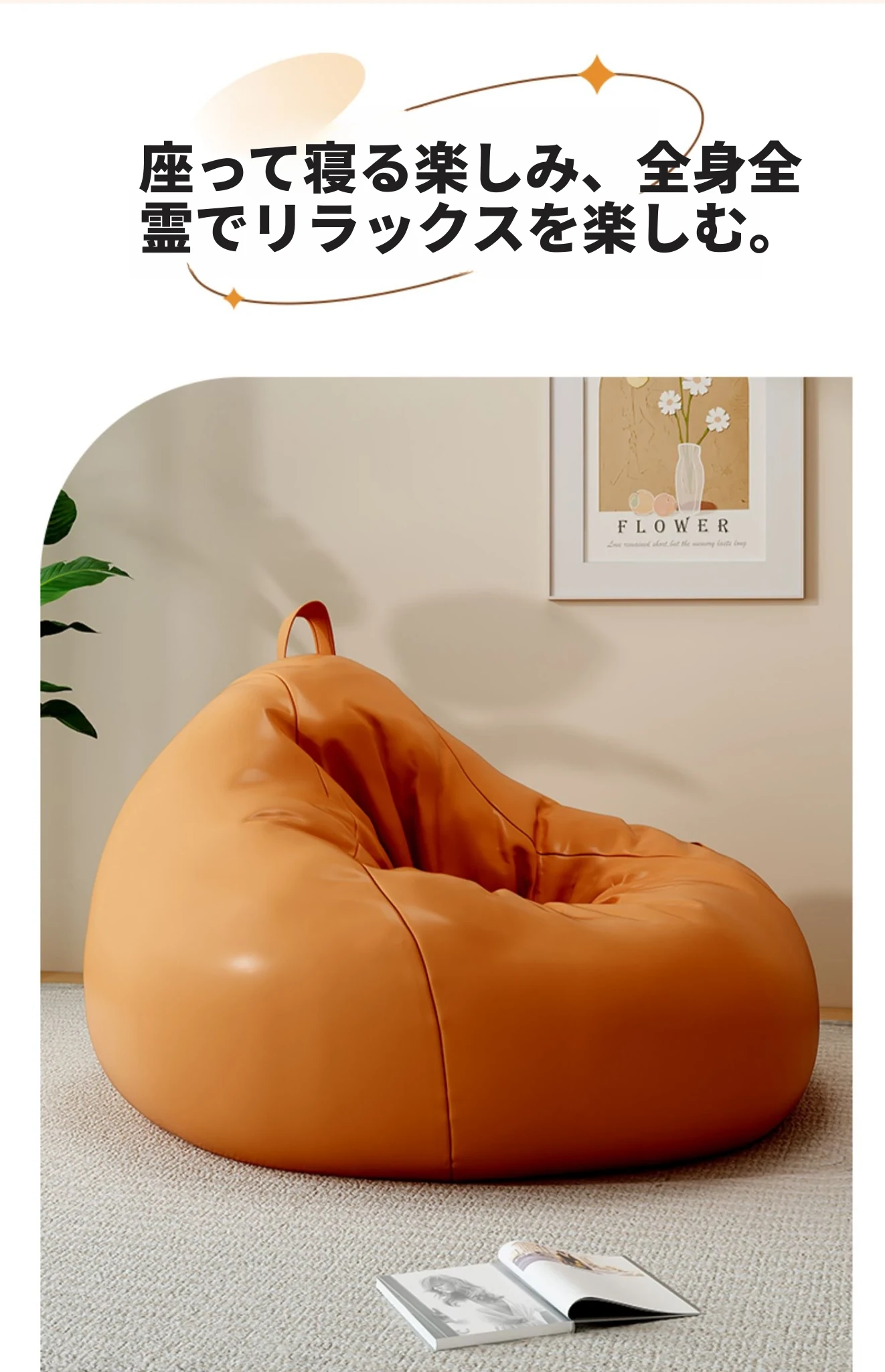 IKAEのリラックス豆袋ソファ - 寝転びもできる!快適な座り心地で、寝室やバルコニー、畳の上でのくつろぎタイムに最適。長時間の座位でも疲れにくい、あなたの癒し空間を演出します。