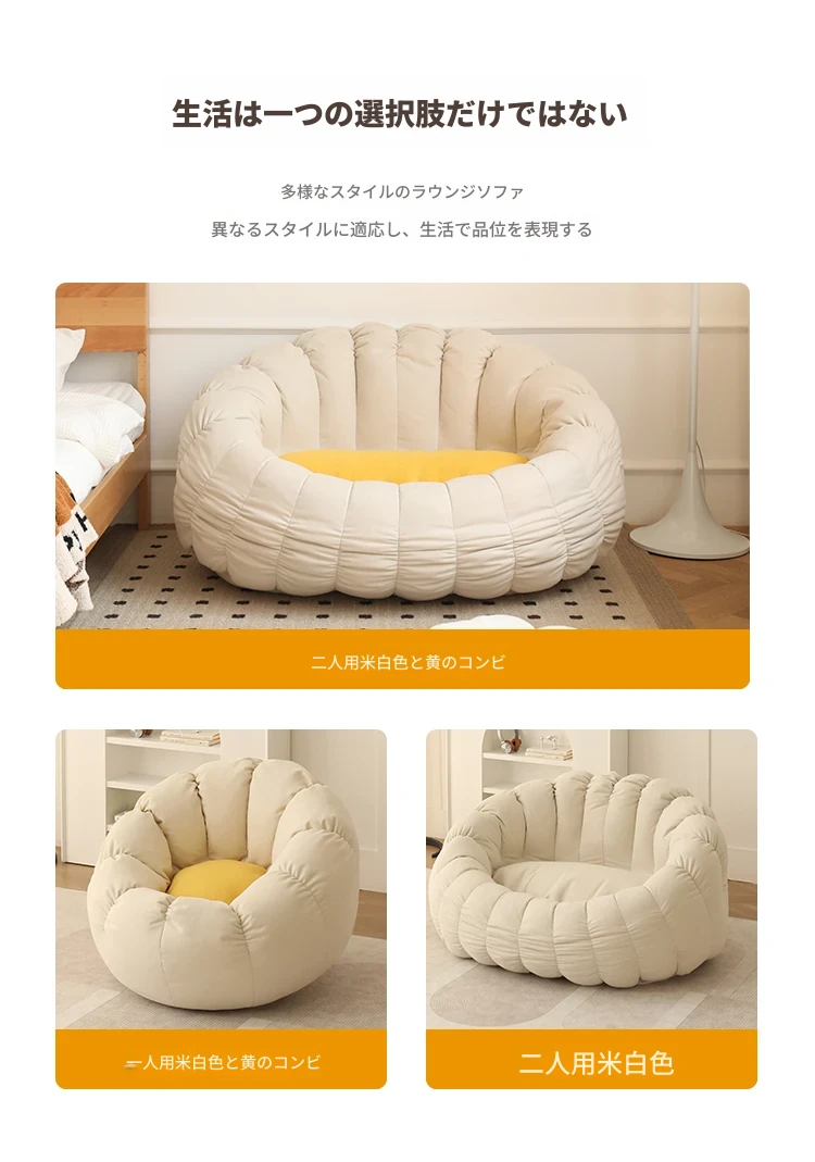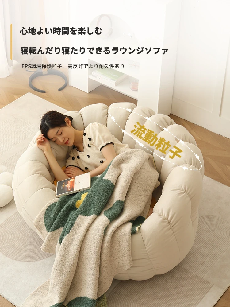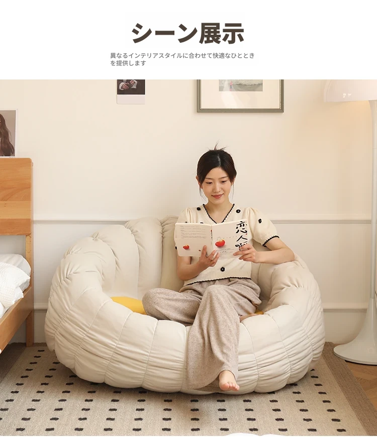 IKAEのリラックスソファ、寝転びもできる!2025年新作、ベッドルームやリビングにぴったりのダブルサイズ、バルコニーや部屋に最適な小豆袋スタイル。快適さとスタイルを両立させたあなたの新しい癒しスペース!
