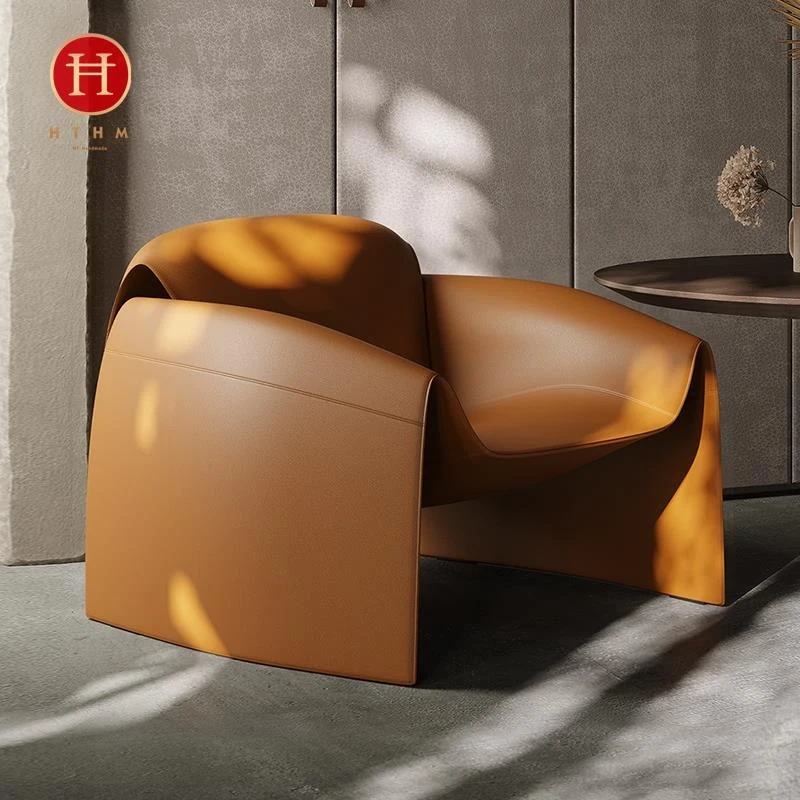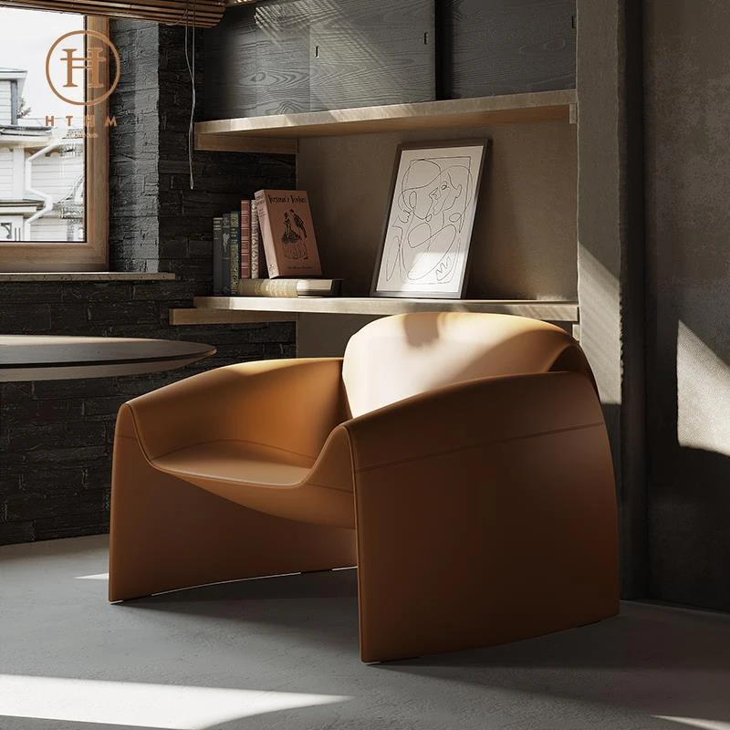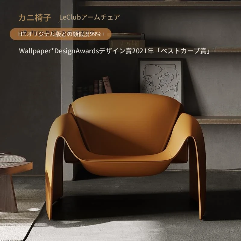 LeClub 蟹型ソファチェア - 本革使用のイタリアンラグジュアリー・デザイン!シンプルで洗練された一人掛け椅子、リビングやバルコニーに最適なくつろぎ空間を演出します。
