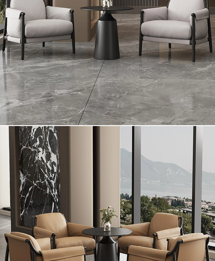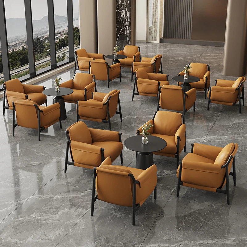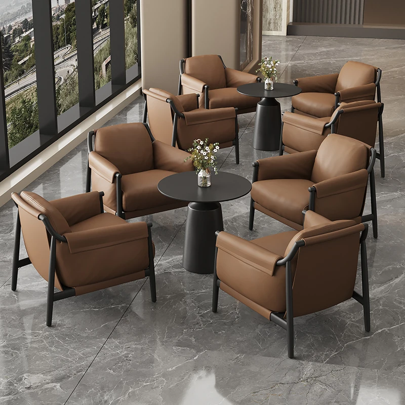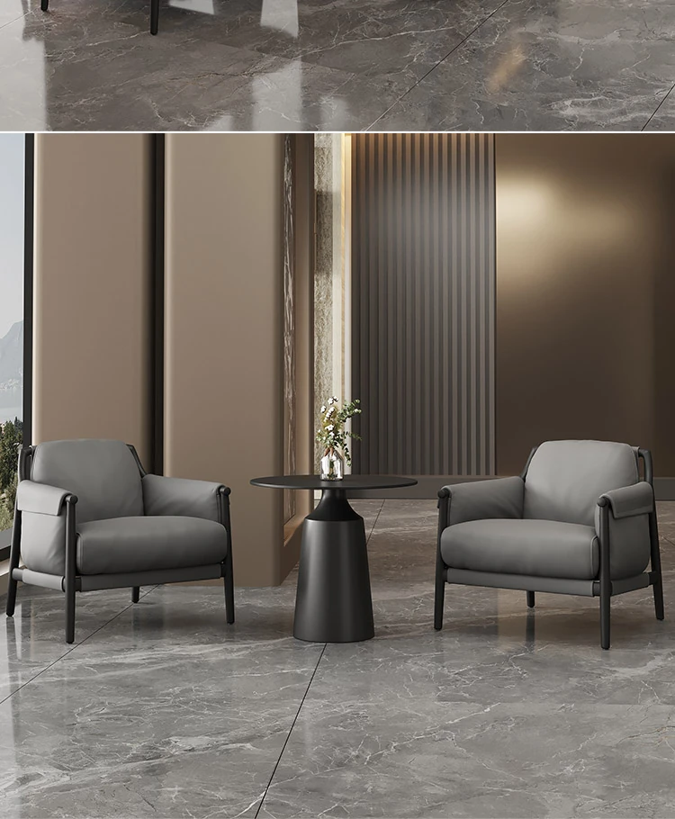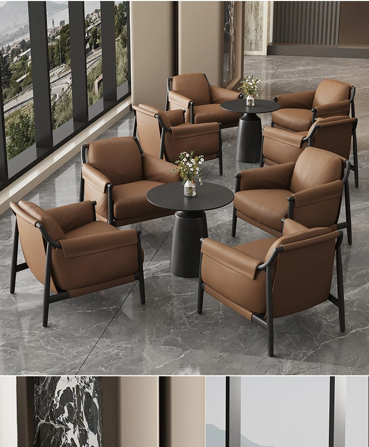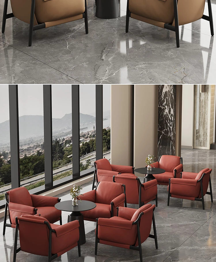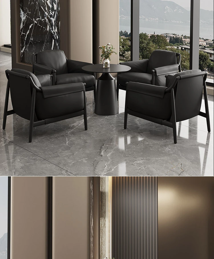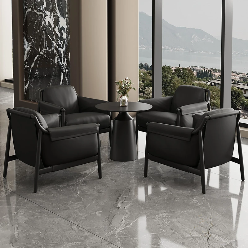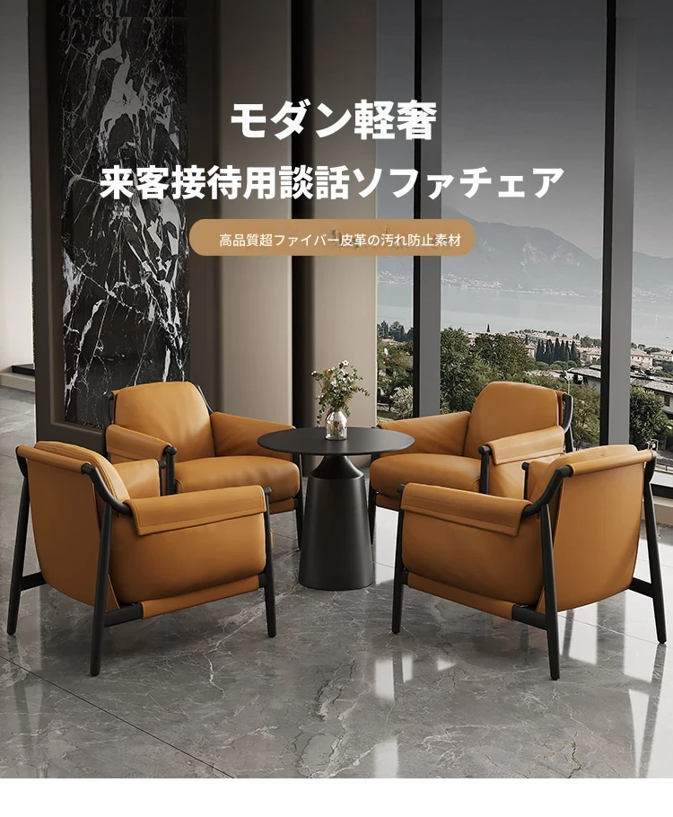 イタリアンスタイルの一人掛けリクライニングチェア - ホテル客室や商談に最適!モダンなデザインのテーブルと2脚の椅子のセット。4Sショールームにもぴったりな、洗練された接客空間を演出します。