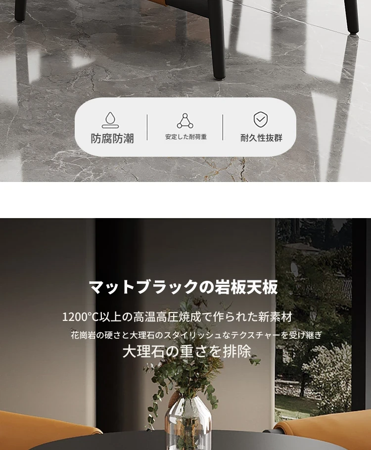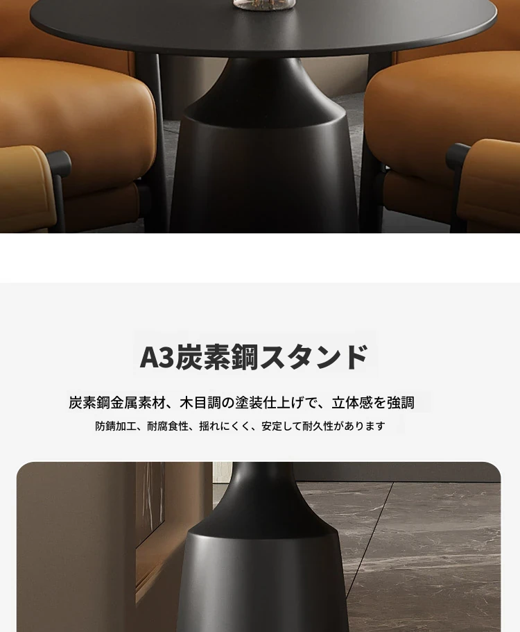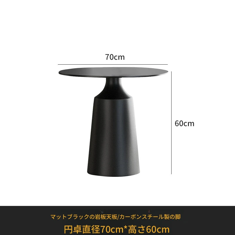 ラウンドテーブル:60*60cm【マットブラックスレートトップ/炭素鋼】