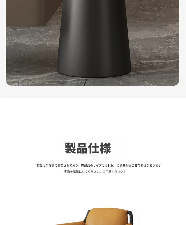 ラウンドテーブル:50*60cm【マットブラックスレートトップ/炭素鋼】