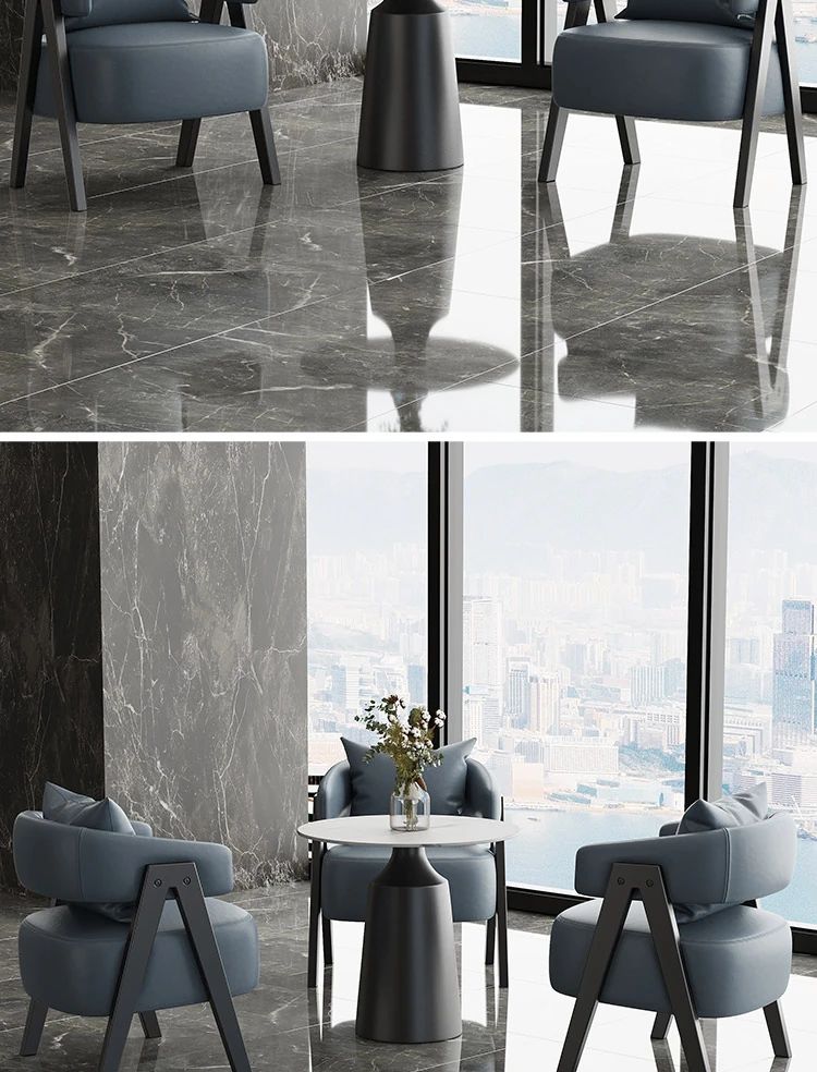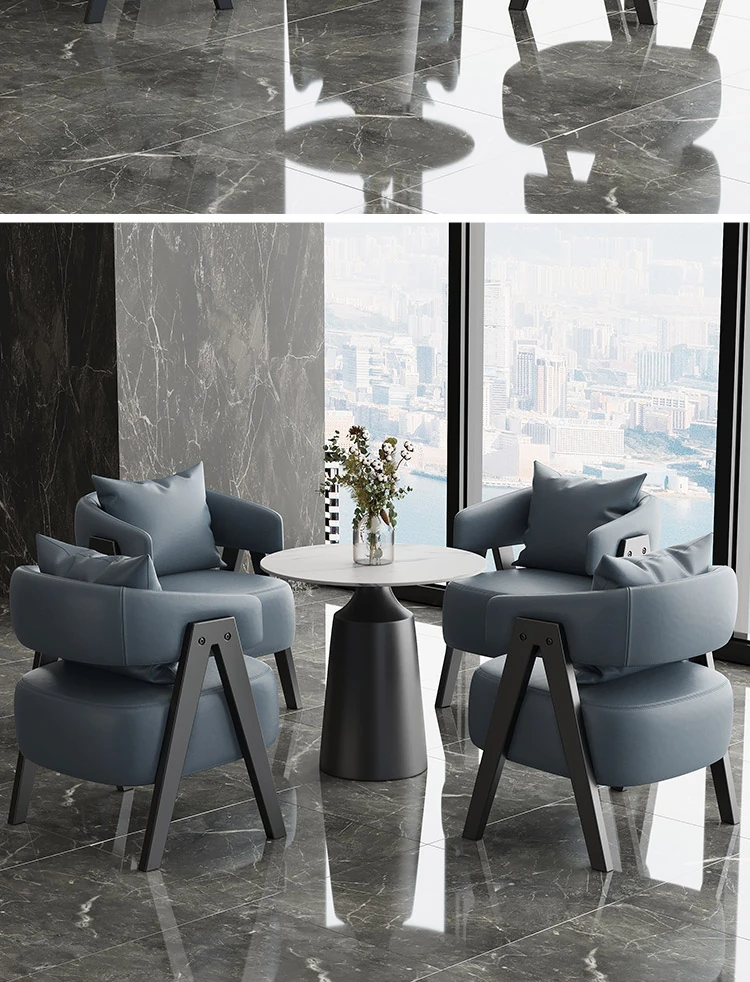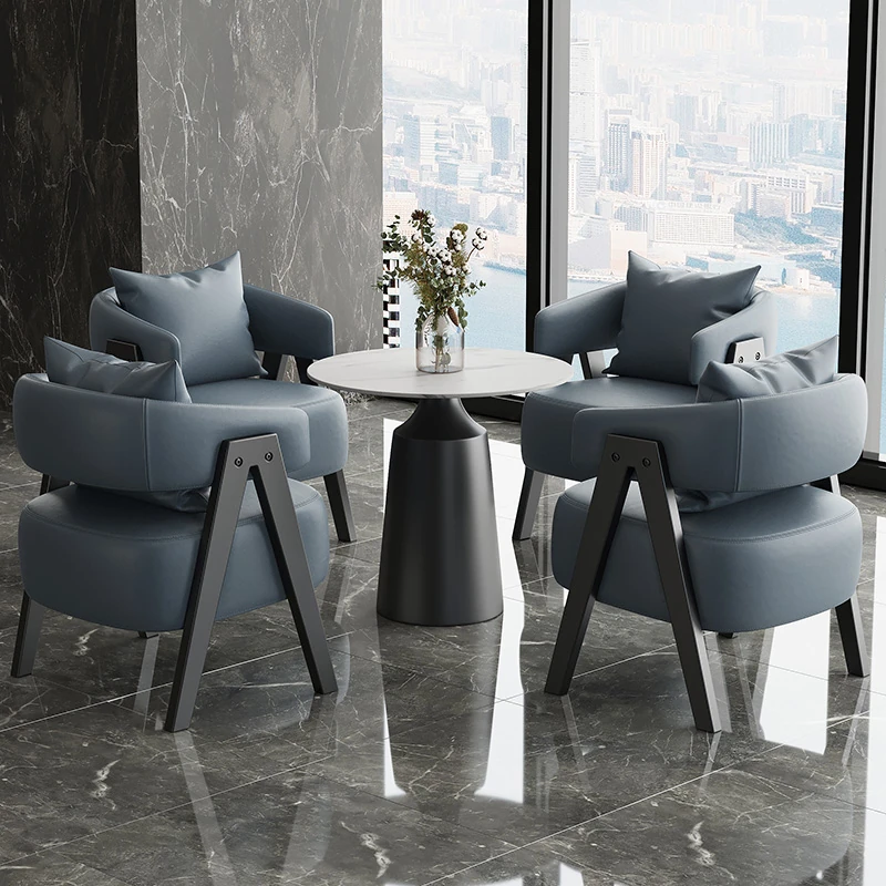 ソファチェア(ブルーグレー/ナパレザー(本革調)/カーボンスチール脚)