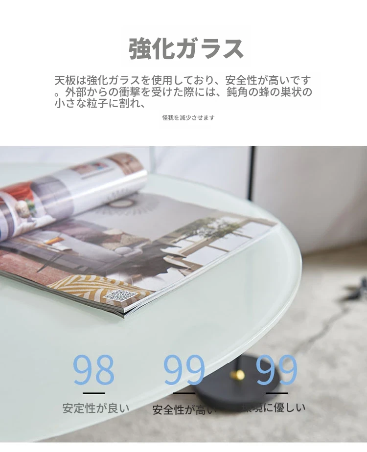 90円卓-ホワイト-強化ガラス