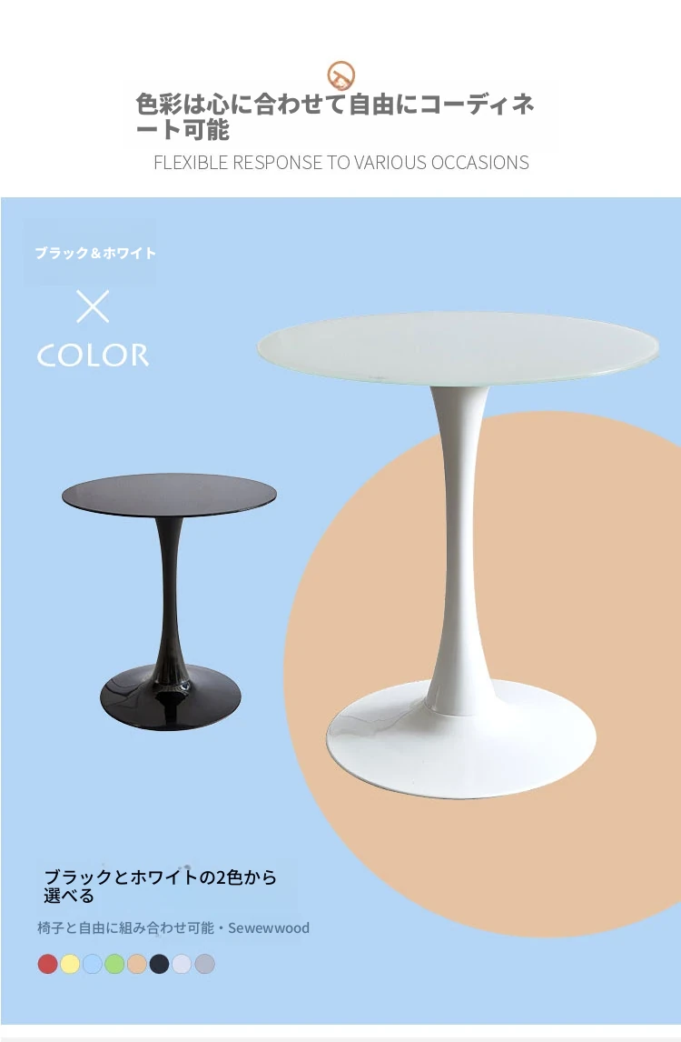 モダンシンプルな北欧スタイルのカフェテーブル&チェアセット - バルコニーや休憩スペースに最適!イームズデザインの小さな丸テーブルで、コーヒーやティーを楽しむひとときを演出。おしゃれで快適な空間を手に入れよう!