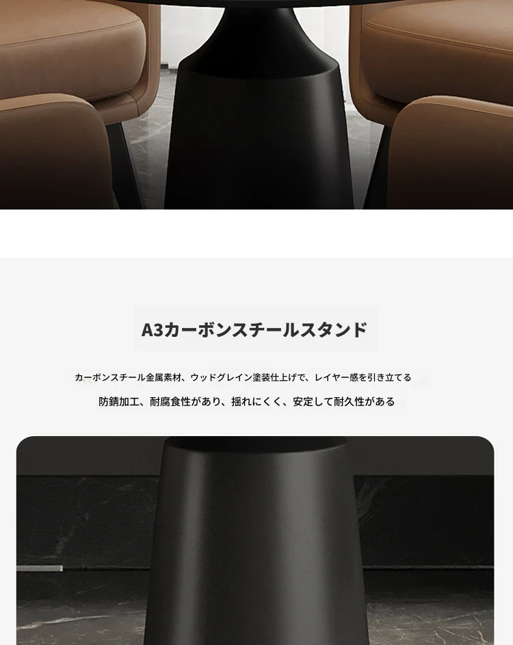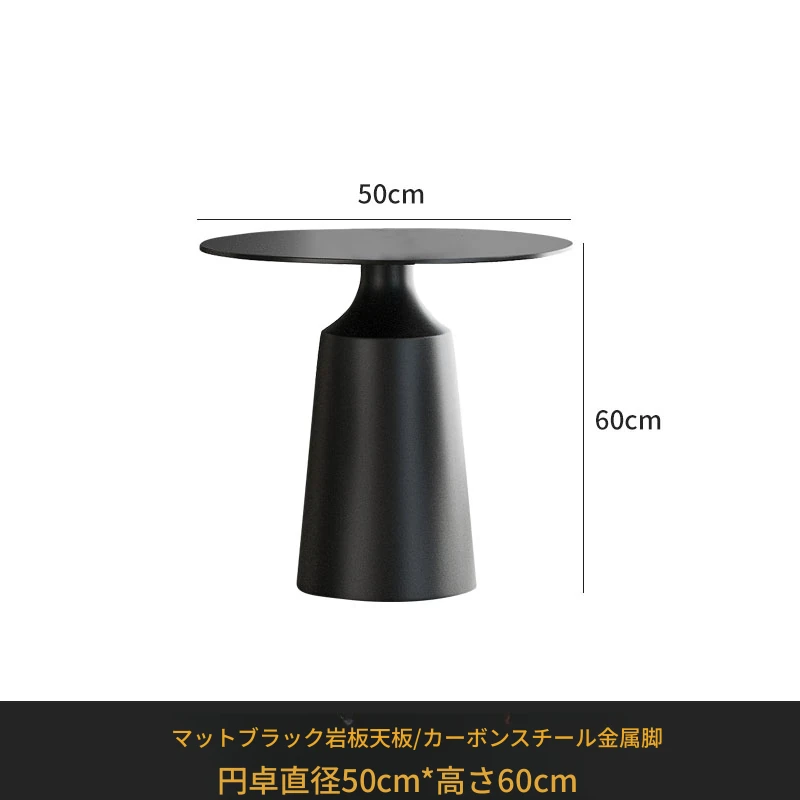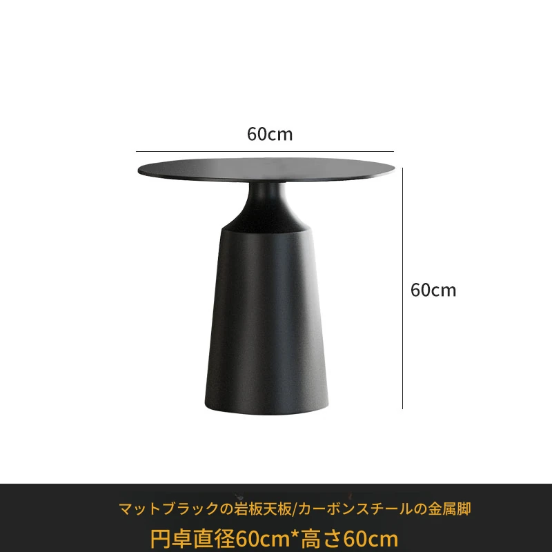 円形テーブル:60*60cm【マットブラックの岩板天板/カーボンスチール】